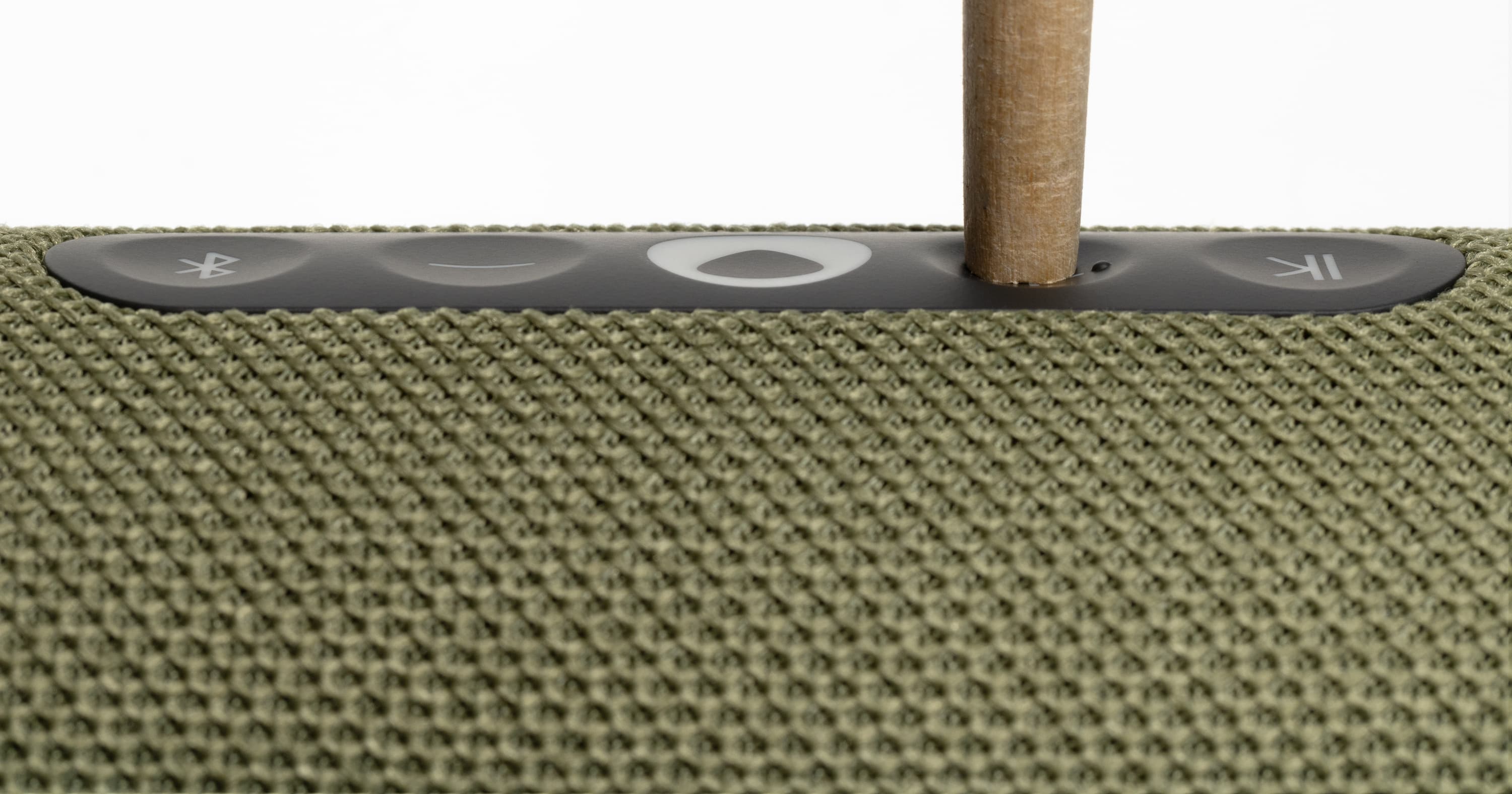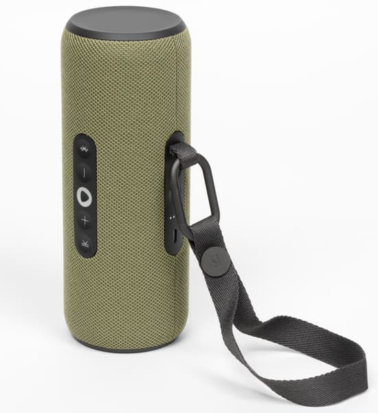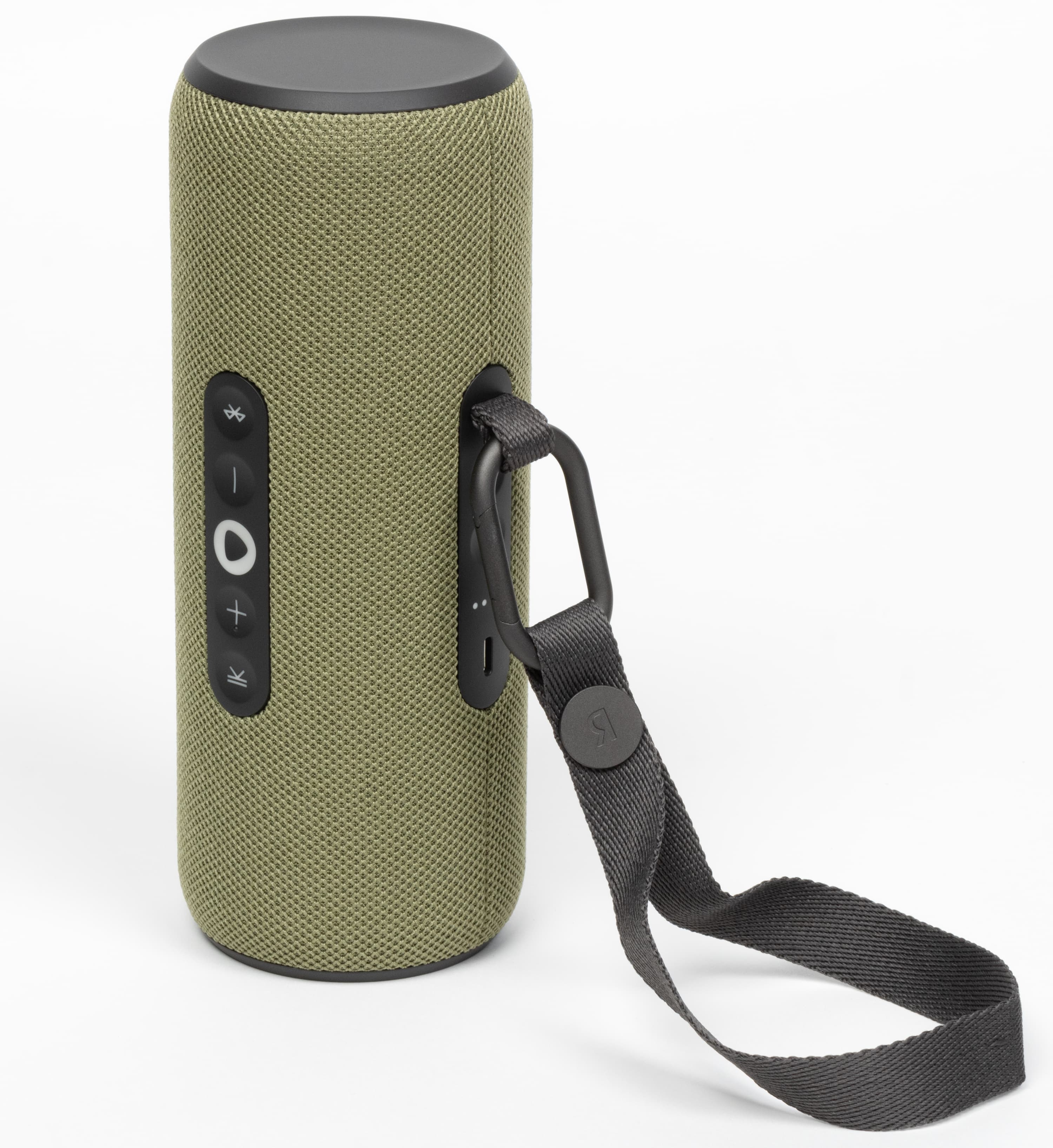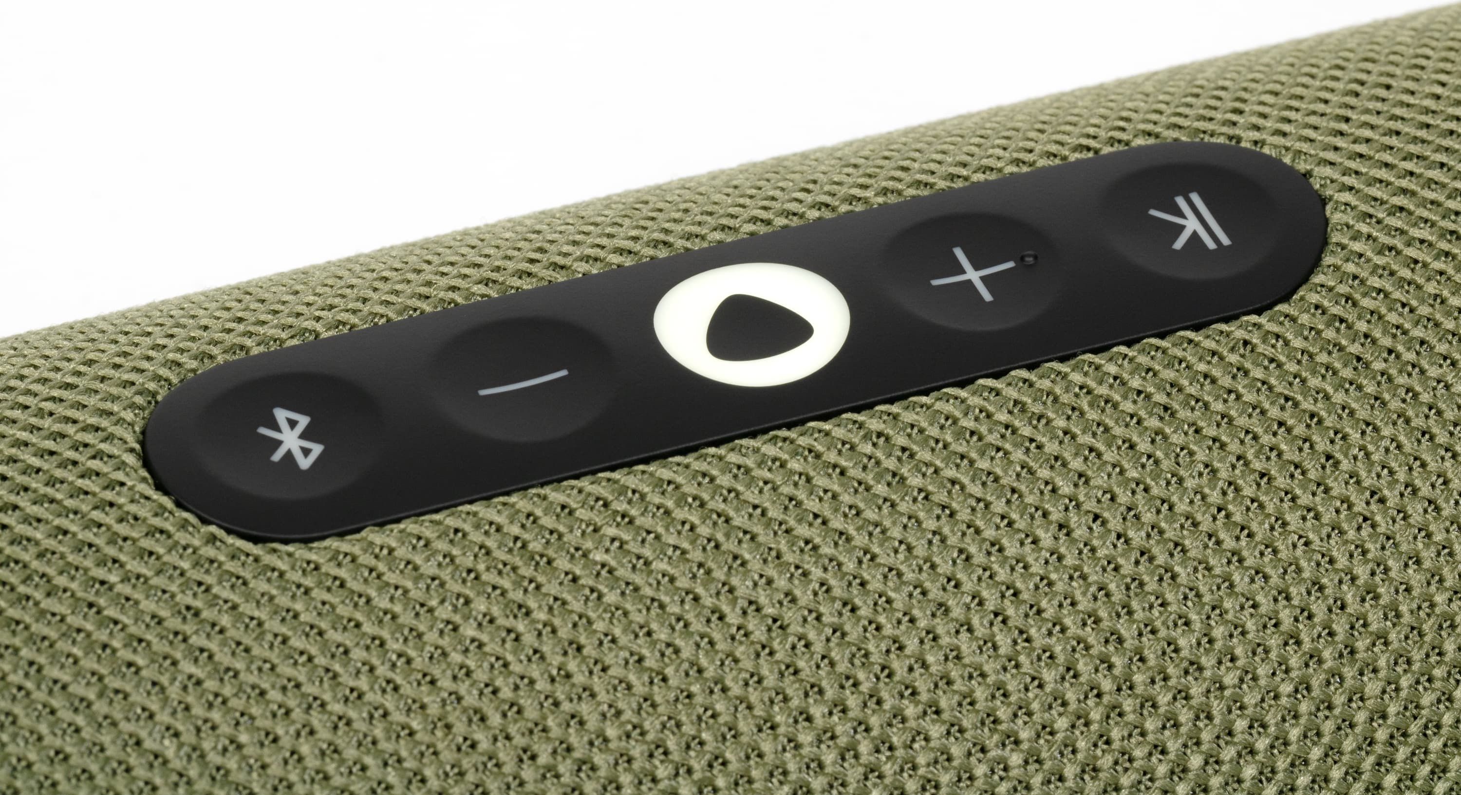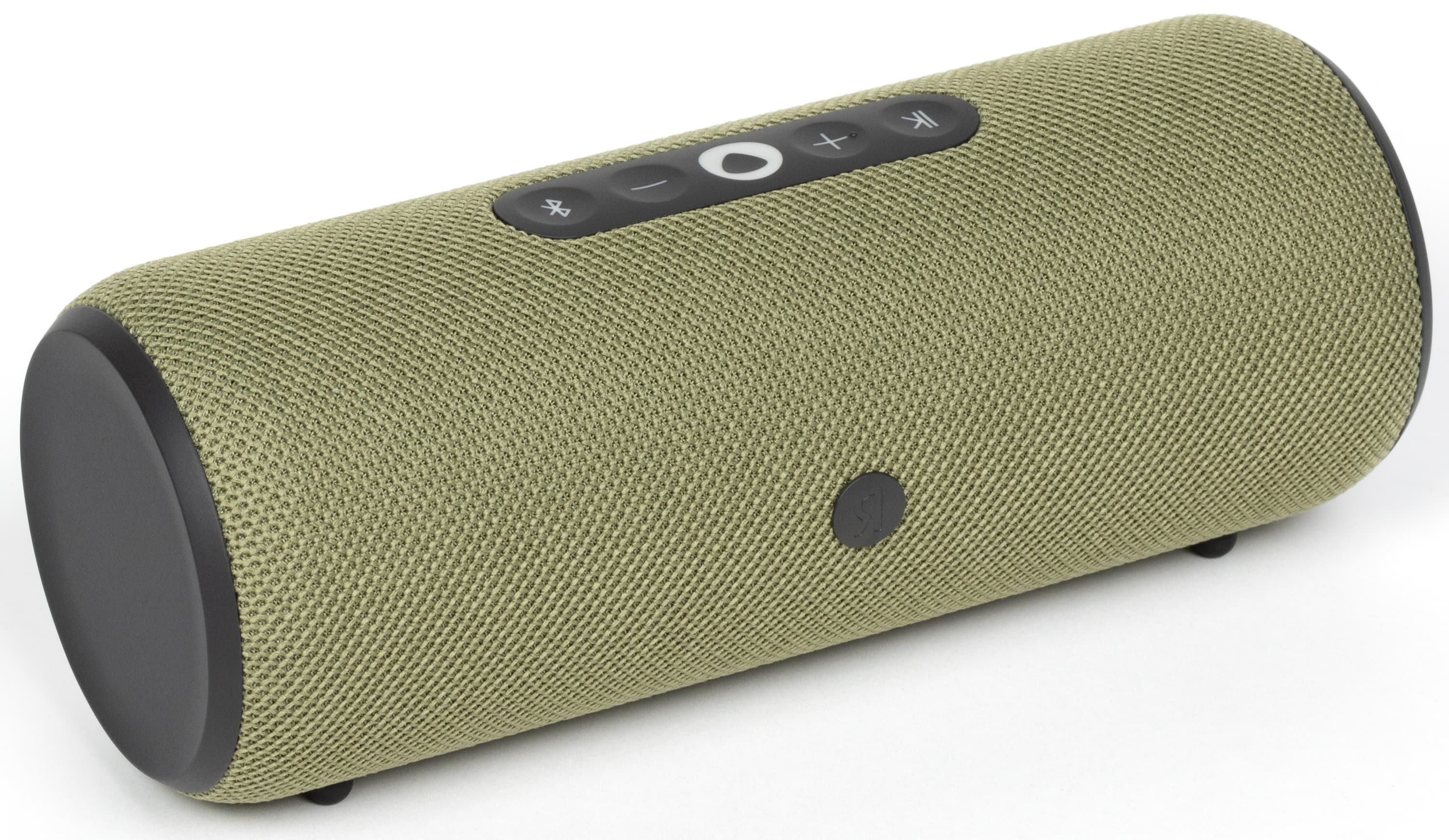 На старте продаж «Станция Стрит» будет доступна в двух цветах: черном и зеленом — нам для тестирования достался второй вариант. Планов по новым расцветкам компания пока не раскрывает, но, судя по опыту, их появление вполне вероятно. Форма корпуса у колонки классическая для переносной Bluetooth-акустики — бочкообразная. Габариты и масса — типичные для такого форм-фактора, колонку легко можно переносить в рюкзаке или небольшой сумке.