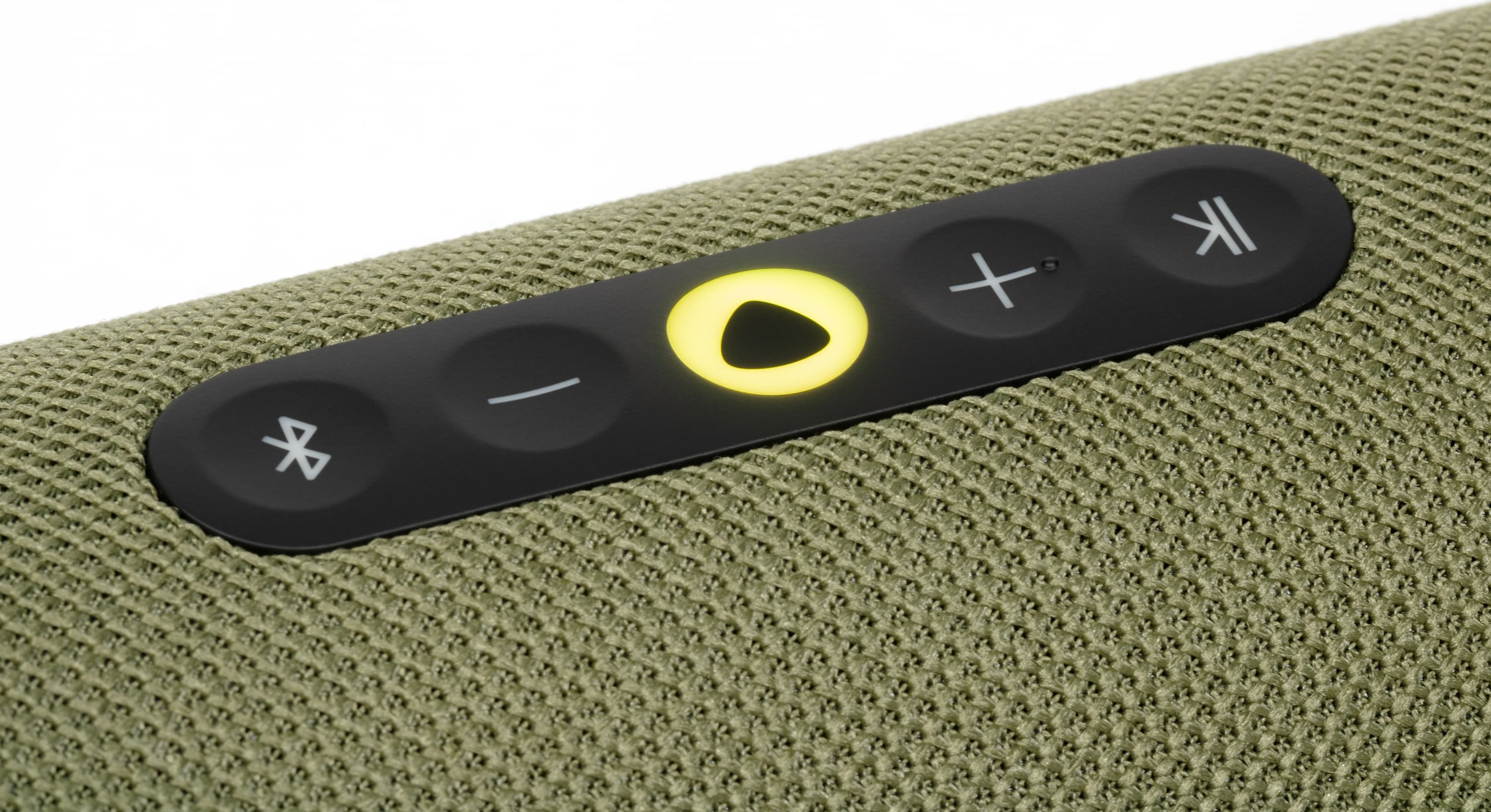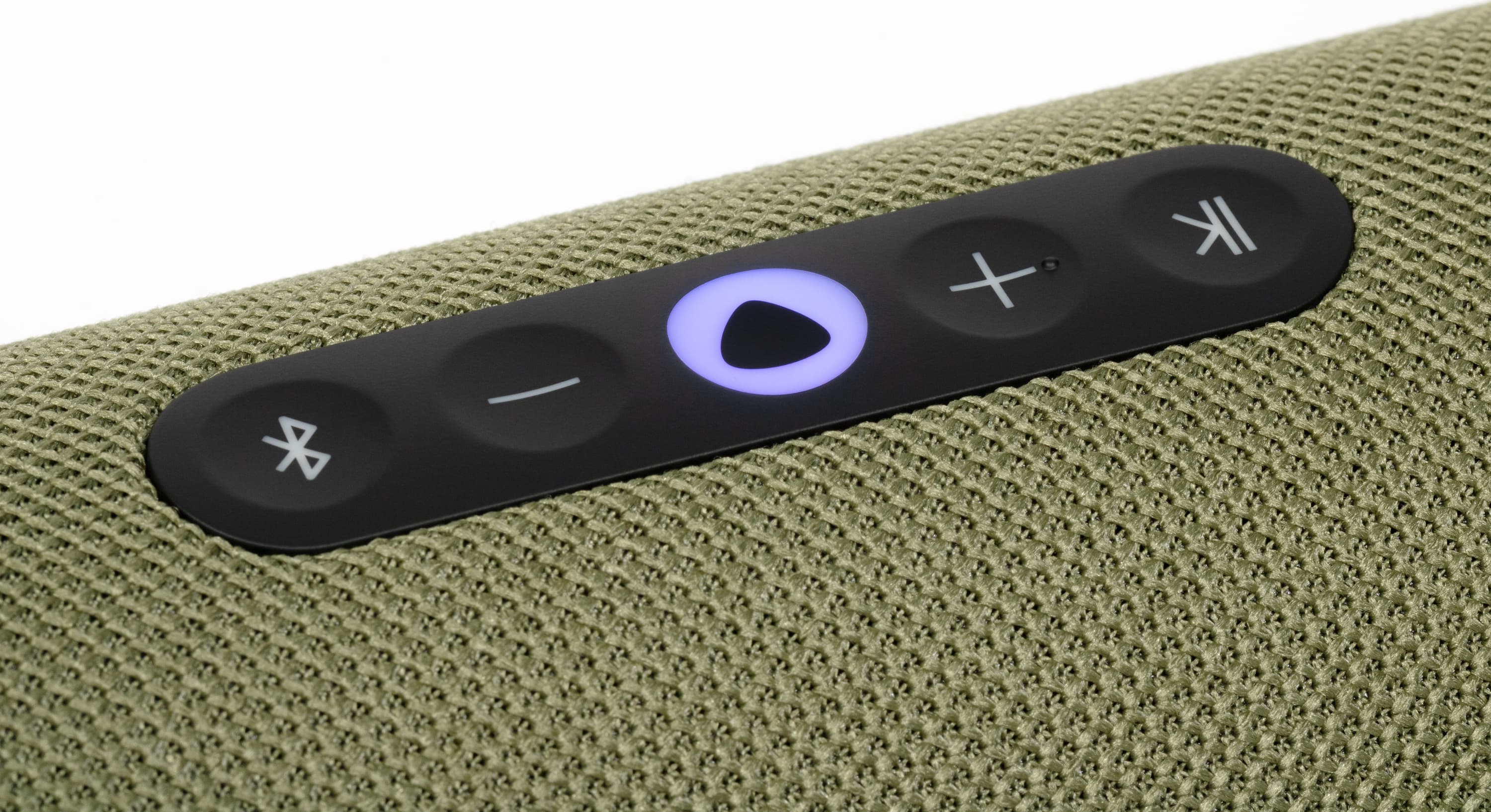 Но и кнопками «Станцию Стрит» не обделили — их аж 7 штук, объединенных в два блока. На панели, которая оказывается верхней при горизонтальном размещении, собраны клавиши управления воспроизведением и громкостью, запуска Bluetooth-сопряжения и вызова голосового ассистента. Все они подписаны — запутаться сложно. Кнопка увеличения громкости дополнительно выделена выпуклой точкой, хорошо заметной на ощупь.