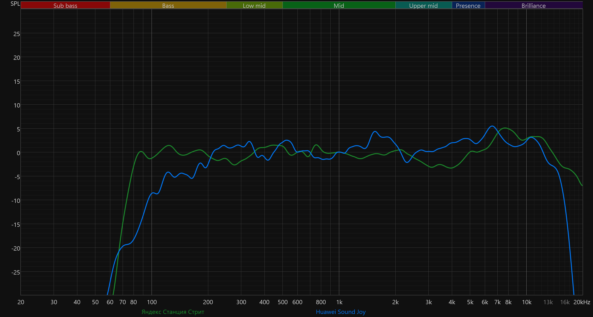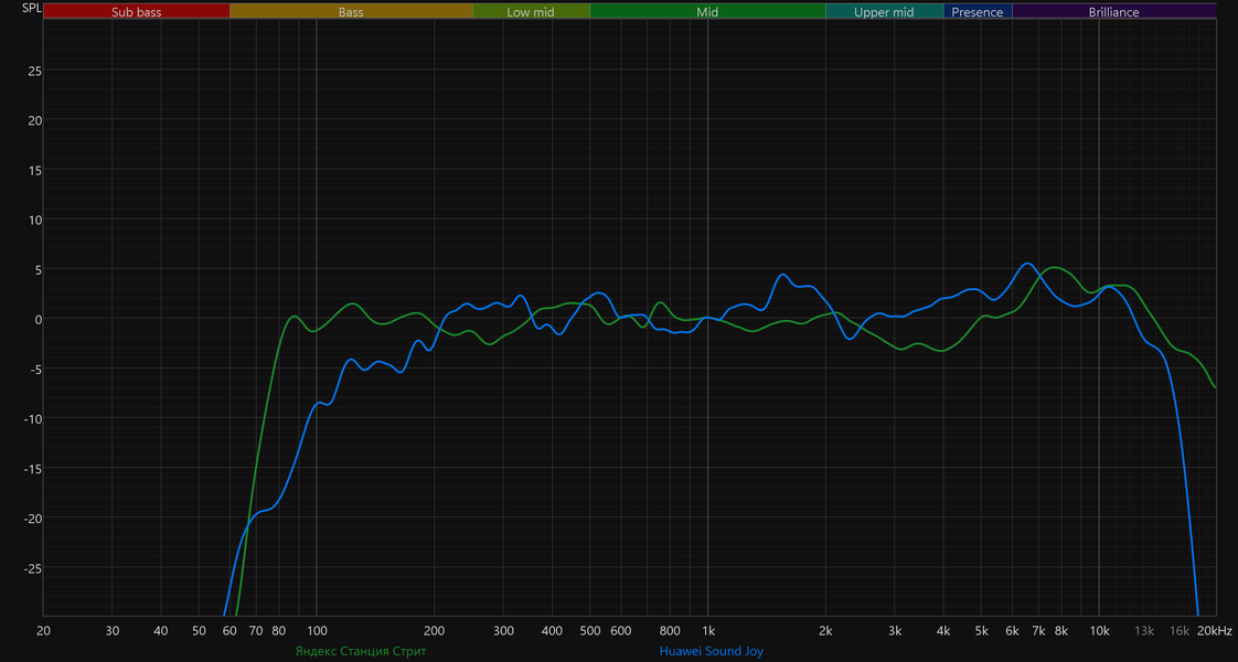 Звучит «Яндекс Станция Стрит» хорошо, так что если и сравнивать ее — так с лучшими портативными колонками из тех, что попадали к нам в руки. В первую очередь, конечно, с JBL Flip 6. Акценты на ВЧ, довольно ровная середина — тут практически паритет. А вот бас у Flip 6 пусть и не такой плотный, заметно гудящий, но намного более впечатляющий, с ярким «ударным» эффектом — тут у нее мало конкурентов. У Huawei Sound Joy бас поскромнее, чуть менее равномерная середина, но за счет интересно расставленных акцентов звучит она довольно приятно — свое дело специалисты из Devialet, участвовавшие в разработке, знают.