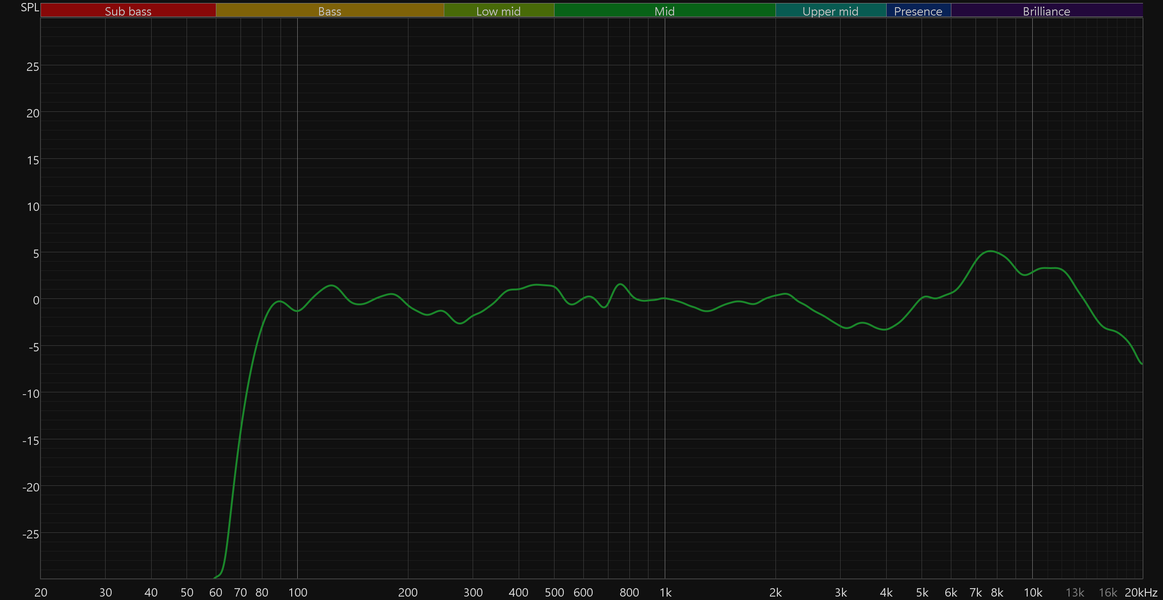 СЧ-диапазон — наше почтение: на удивление ровный для портативной акустики, что обеспечивает приятную и равномерную подачу вокала и инструментов. Небольшой провал в верхней середине делает звучание чуть более мягким и комфортным, хотя при этом есть риск потерять немного четкости вокала и атаки солирующих инструментов. Впрочем, выражен он не слишком сильно, так что оба эффекта остаются в пределах разумного. Заметный пик в районе 8 кГц добавляет яркости и «воздушности», но в некоторых треках может звучать излишне резко и вызывать проблемы с сибилянтами.