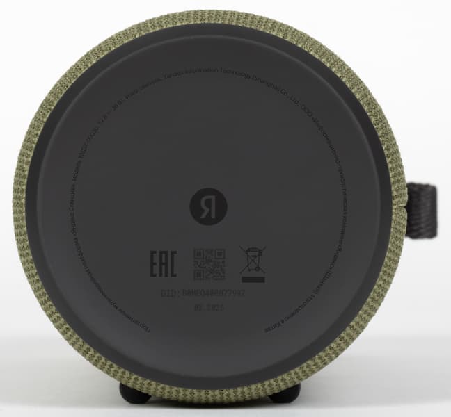 Панель с динамиками отмечена небольшим логотипом производителя в центре — условно можно считать ее передней. Именно отсюда исходит звук, что стоит учитывать при размещении устройства: если хочется получить максимум, не следует поворачивать колонку «спиной» к себе.