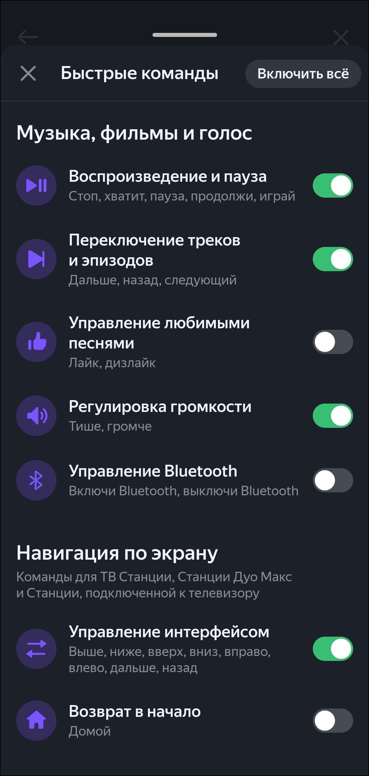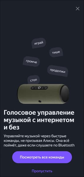 Поддерживаются и быстрые команды, не требующие обращения к голосовому ассистенту: вместо «Алиса, следующий трек» достаточно сказать просто «следующий». Какие именно команды будут «быстрыми», можно настроить в приложении.