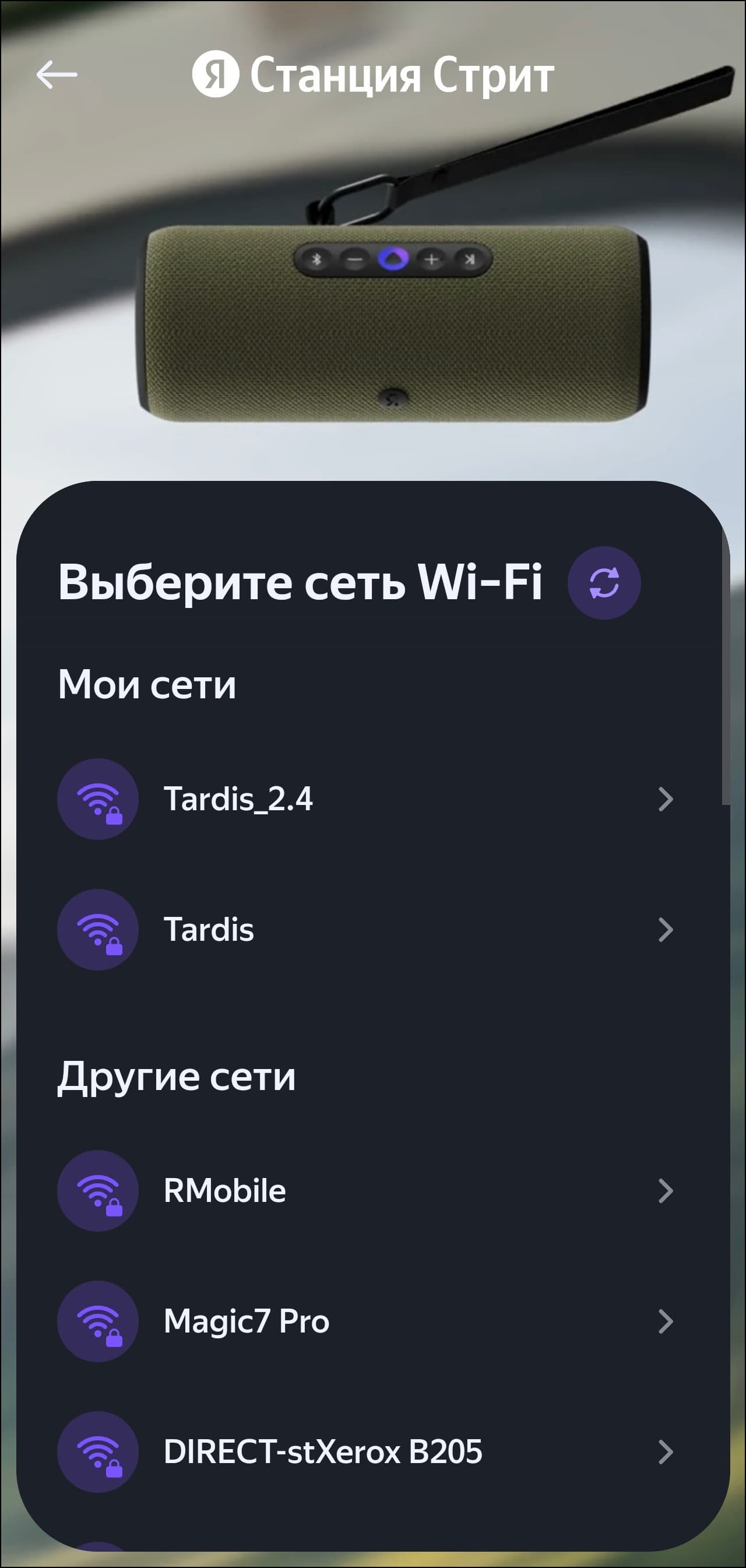 Как уже упоминалось выше, «Станция Стрит» умеет запоминать сразу несколько Wi-Fi-сетей и автоматически переключаться между ними, как только поблизости появляется знакомая точка доступа. Можно без проблем перемещаться между «домашней» и «дачной» сетями, раздавать интернет с телефона или быстро подключать колонку в гостях. Если в текущей сети нет интернета, «Станция Стрит» сама начинает поиск лучшего варианта среди сохраненных и подключается к нему автоматически. Смена сети занимает от 30 до 90 секунд — иногда приходится чуть-чуть подождать.