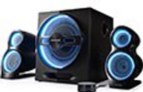 08 июн 2017 14:00 Видеообзор Microlab T-10: игровые колонки 2.1 с поддержкой Bluetooth Для любителей поиграть в ассортименте Microlab появилась первая акустическая система 2.1 с поддержкой интерфейса Bluetooth и неоновой подсветкой. Дизайн сателлитов и фронтальной панели сабвуфера выдержан в футуристическом стиле. Усилитель размещен в корпусе сабвуфера и обеспечивает выходную мощность по 16 Вт для двух каналов сателлитов и 24 Вт для низких частот. На тыльной стороне есть два аналоговых регулятора — уровня низких частот и яркости подсветки. У комплекта имеется проводной пульт управления в виде колеса. Наличие в акустической системе поддержки интерфейса Bluetooth позволяет воспроизводить музыку с мобильных устройств. Качество звучания 2.1-набора Microlab T-10 вполне соответствует сегменту недорогих наборов активной акустики. В целом звучание неплохое и лишено ярко выраженных недостатков, но хотелось бы большей детальности в работе среднечастотных динамиков, к тому же звучанию не хватает самых верхних частот.