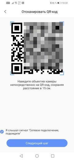 Процесс подключения камеры прост до чрезвычайности. Прежде всего следует выбрать из списка устройств Aqara нужное устройство. После этого в приложении отобразится пошаговый мастер с подробным описанием действий, которые необходимо произвести. Результатом этих действий будет сформированный программой QR-код, содержащий имя Wi-Fi-точки и пароль к ней. Этот код нужно показать камере, которая, немного подумав, подключится к сети.