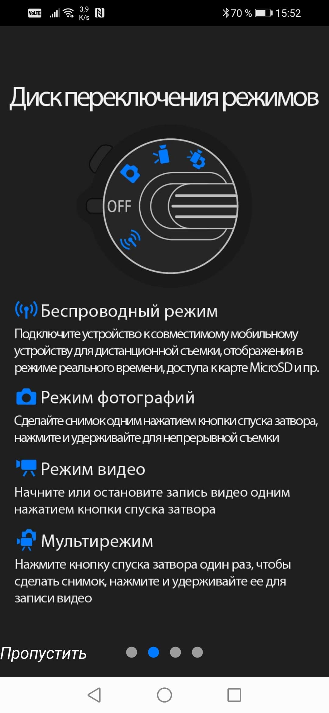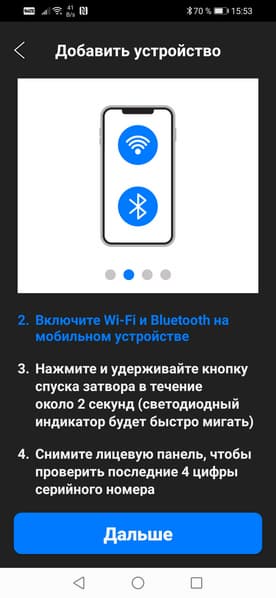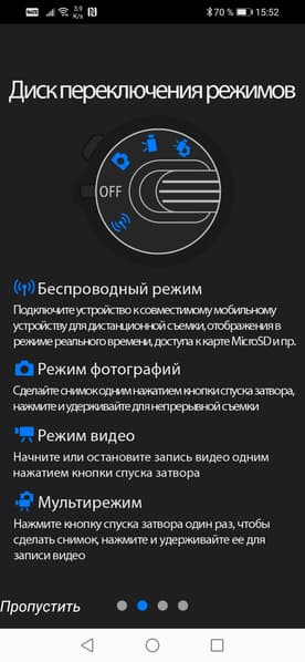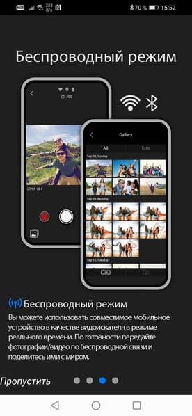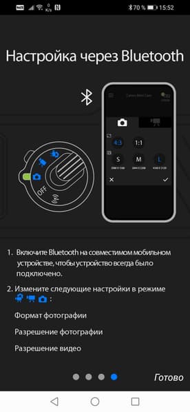 Процесс соединения камеры со смартфоном хорошо проиллюстрирован, так, что не требуется даже читать руководство. Этот хороший тренд поддерживается, увы, далеко не каждым производителем электронных гаджетов. Иногда встречаются довольно сложные гаджеты и фирменные приложения с полным отсутствием каких-либо пояснений и вводных курсов.