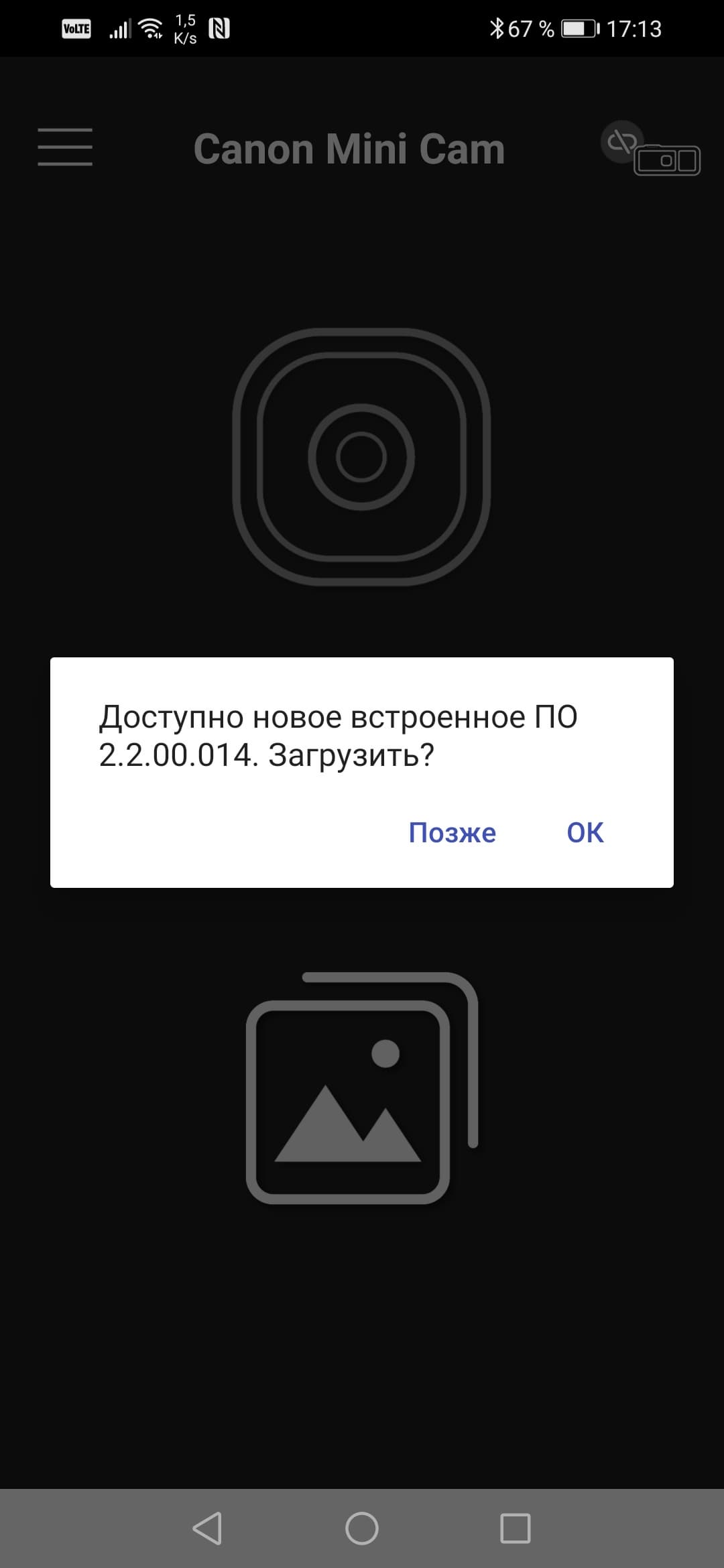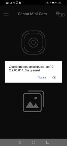 При первом подключении к камере, когда приложение определит текущую версию ее программного обеспечения, пользователь наверняка получит предложение обновить прошивку. Конечно, соглашаемся!