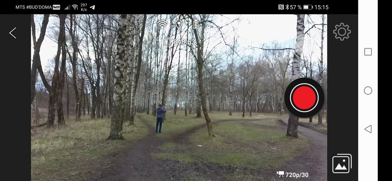 Однако такая плохонькая связь хороша тем, что она удерживается вплоть до 85 метров! Именно на таком расстоянии от камеры сделан этот скриншот (человек со смартфоном находится далеко в центре кадра, в глубине березовой рощи). А стоило отойти еще на несколько метров дальше, как связь между камерой и смартфоном разорвалась окончательно. Нам еще не доводилось видеть камеру с таким дальнобойным Wi-Fi-адаптером, этот непревзойденный результат слишком хорош даже для роутера.