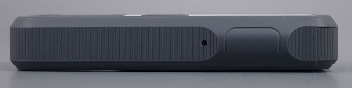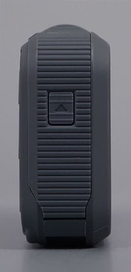 Диск вращается очень легко, почти без сопротивления, что несет риск случайного переключения режимов или включения камеры. Слева от диска расположены два светодиода, сигнализирующие о текущем статусе камеры. Справа от диска, чуть ниже, можно видеть отверстия встроенного динамика. Он нужен для воспроизведения звуковых сигналов старта и окончания записи, включения/выключения камеры и т. д.