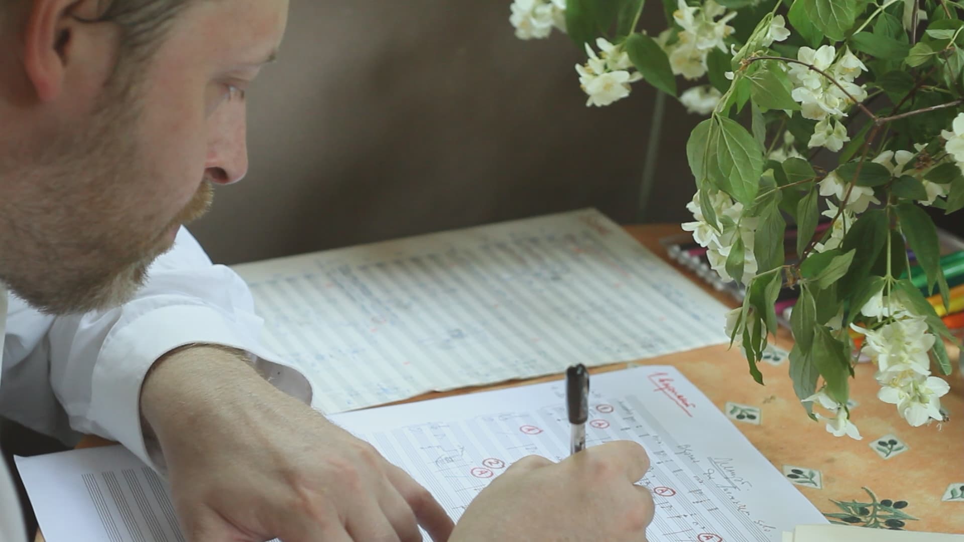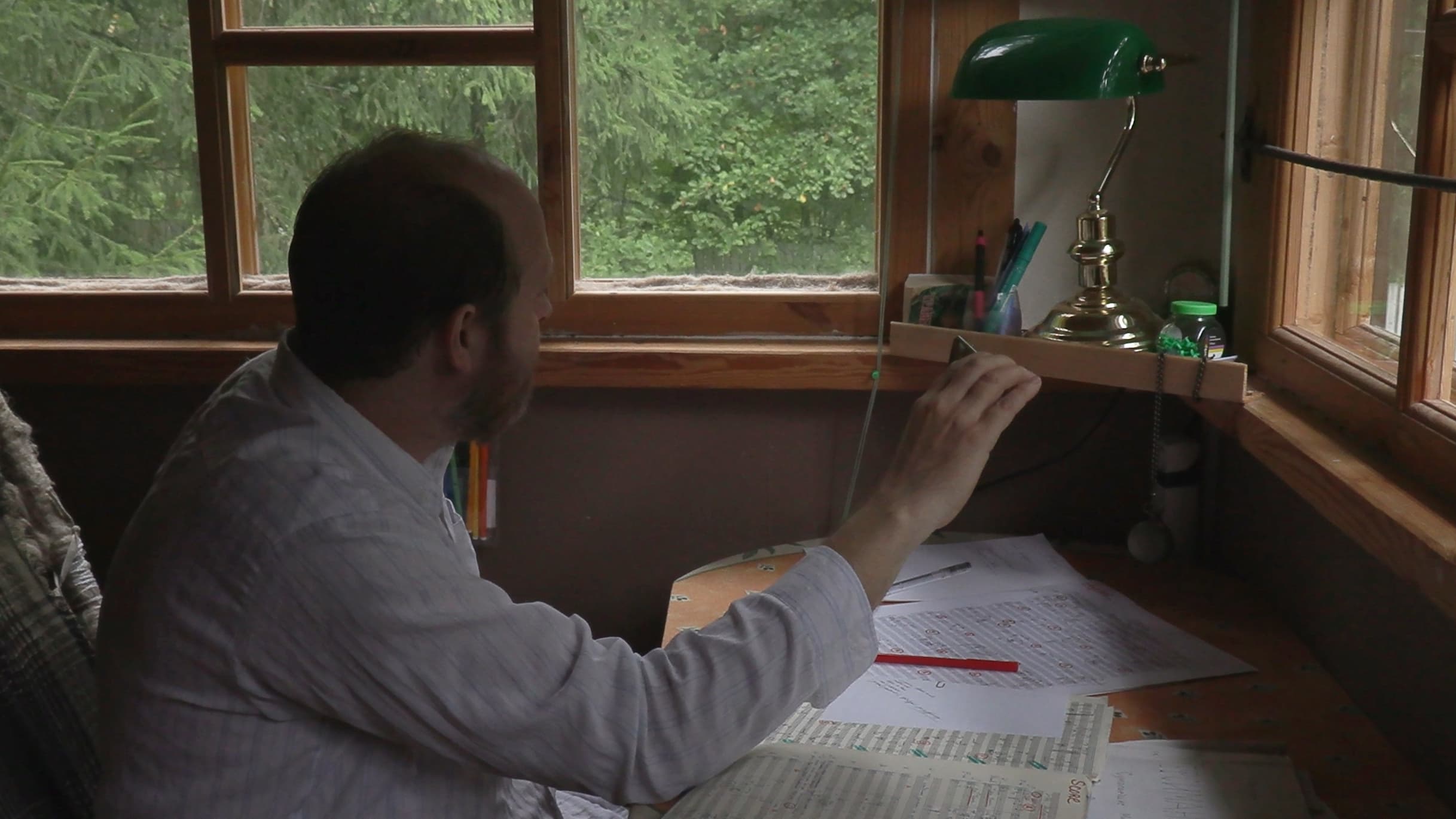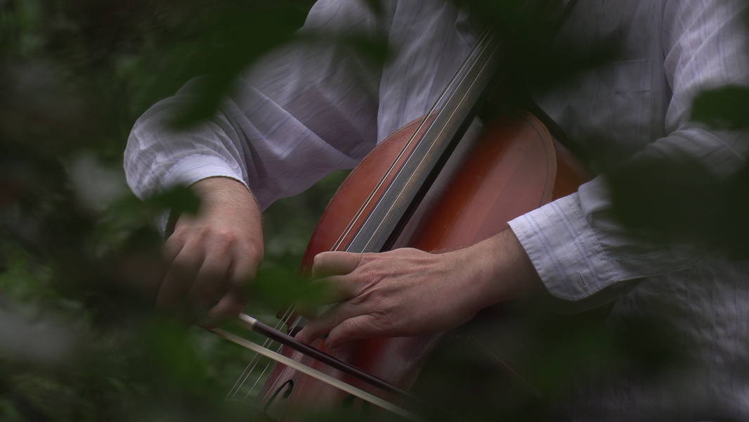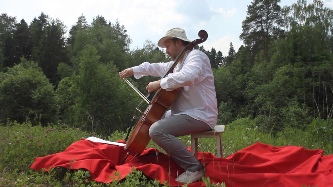 После впечатляющего успеха фильма «Симфония орга́на», работе над которым была посвящена прошлая статья, было решено продолжить создание фестивального кино о музыке. Новый проект Сергея Уварова, соединяющий документальную и игровую экспериментальную составляющую, будет посвящен молодым российским композиторам. И одна из идей концепции — в том, что музыкальные сочинения академического направления здесь целиком исполняются в нестандартных условиях. Например, в той сцене, о которой речь пойдет ниже, известный композитор Ярослав Судзиловский исполняет свою музыку на виолончели в поле, на опушке леса, у реки.