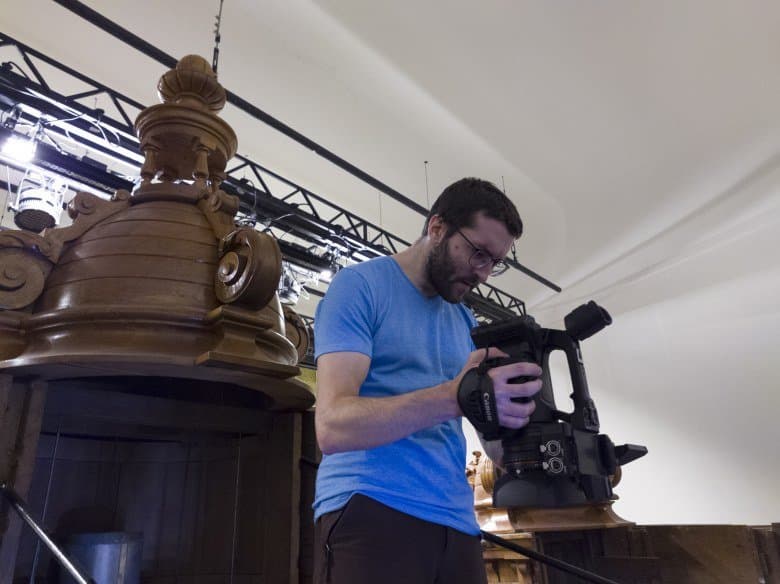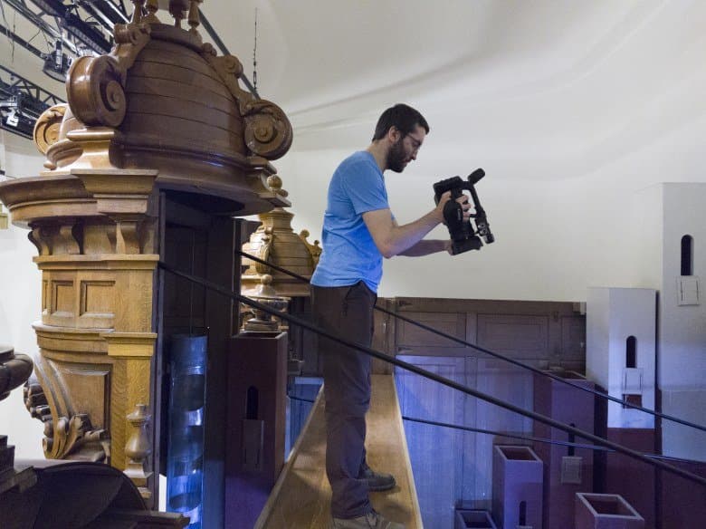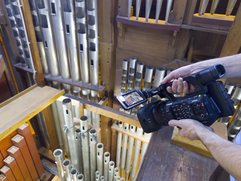 В статье про создание документально-музыкального видеоролика на камеру Canon XF605 мы много жаловались на тяжелые условия съемки и детально описывали особенности подбора оборудования, продиктованные совершенно особым пространством — историческим орга́ном Большого зала Московской консерватории. Но, как говорится, лучше один раз увидеть, чем сто раз услышать. Поэтому в дополнение к основному материалу мы подготовили эту заметку, содержащую кадры бэкстейджа.