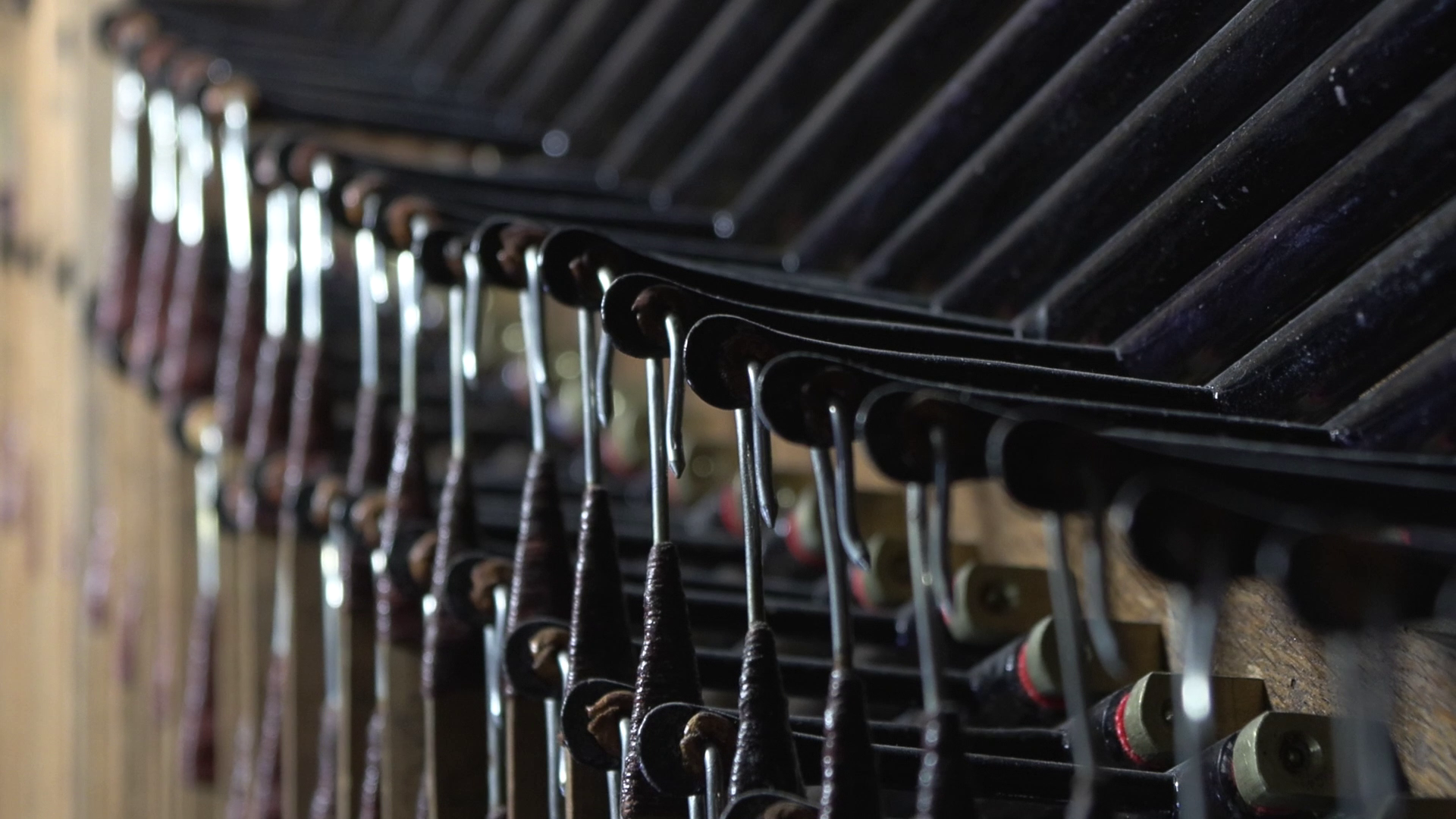 Сложнее было с прово́дками. Исходя из художественной задачи, нам важны были и скорость прово́док, и их длина. Скорость важна для соответствия музыки, длина — для выстраивания правильного «синтаксиса» монтажных фраз. И всё бы ничего, но, как уже было сказано, снимали мы с рук и без какой-либо дополнительной стабилизации, помимо предусмотренной в камере. Конечно, теоретически можно было использовать и штатив-треногу, хотя внутри орга́на это нежелательно (лишнее оборудование, к тому же громоздкое). Но многие планы тогда не удалось бы снять вовсе. Например, этот.