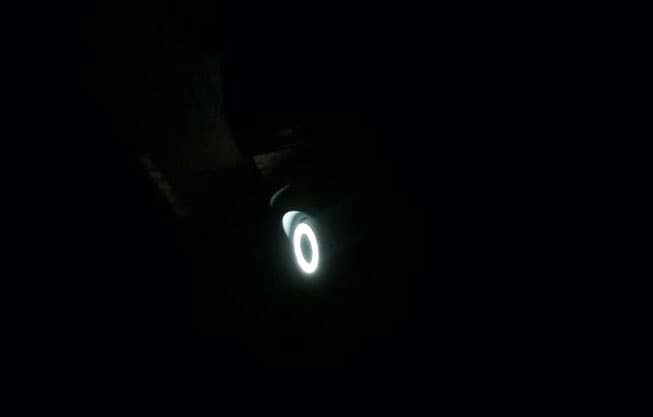 Мы уже говорили о неудачной конструкции белой подсветки, и вот ее наглядный результат. Яркое белое кольцо «забивает» изображение, засвечивая стекло объектива.