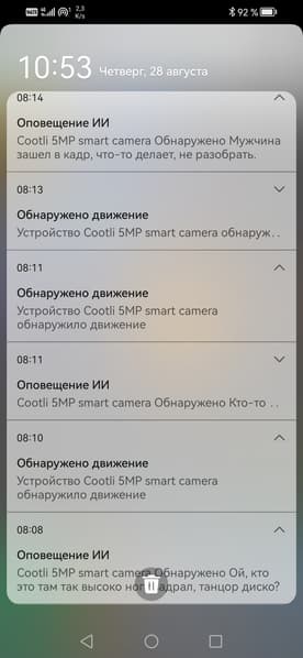 Несмотря на недообученность интеллекта, обе наши камеры чаще всего дают совершенно точное определение тому, что видят. Первые же поступившие на смартфон оповещения искренне обескуражили. Например, комнатная камера оповестила, что видит в кадре банку дуриановых конфет, и даже назвала производителя!