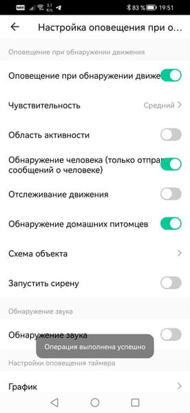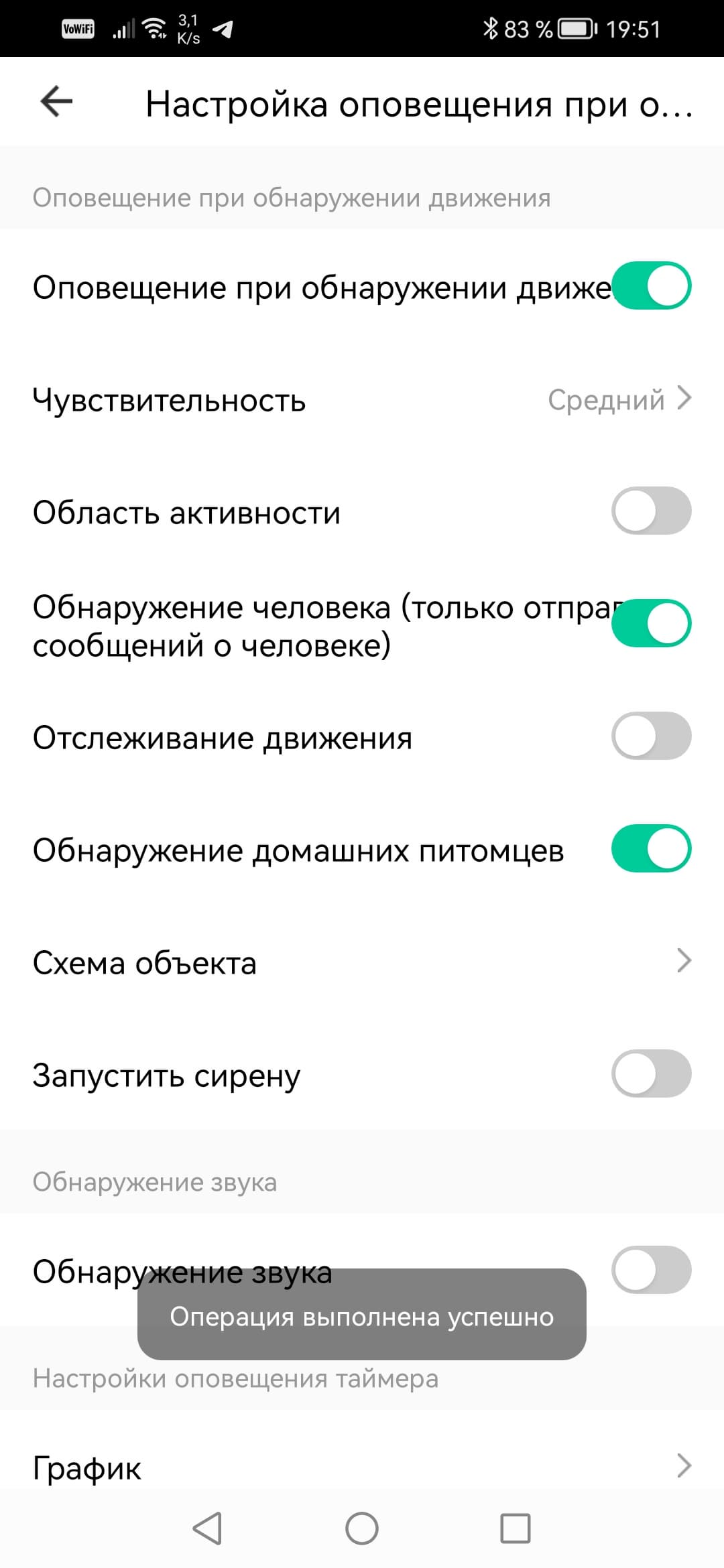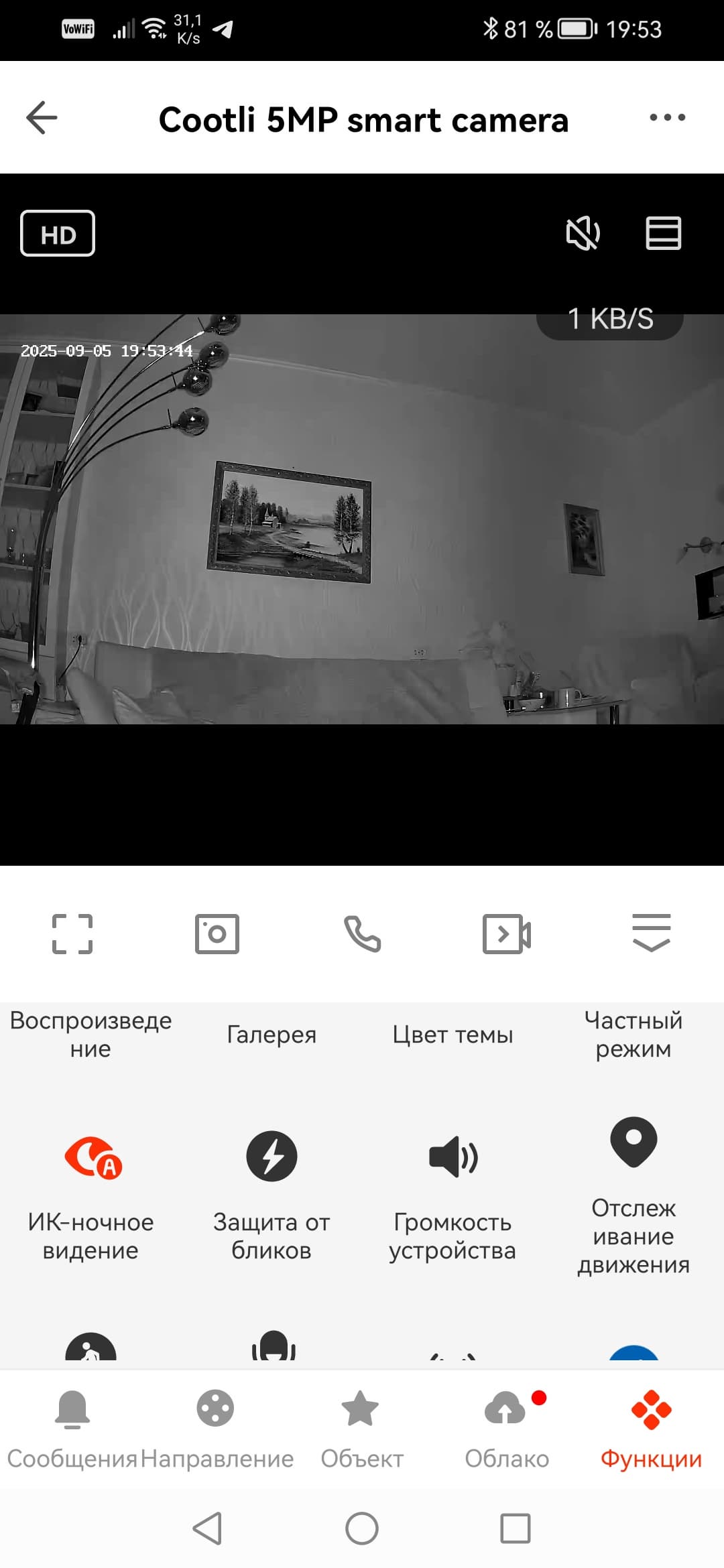 Пара манипуляций — и аппарат успешно работает в составе домашнего комплекса видеонаблюдения в качестве восьмой камеры. При этом поддерживаются такие функции, как детекция движения и управление приводом, меняющим положение аппарата.