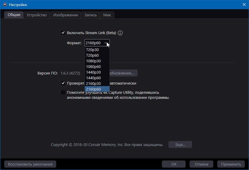 Наличие Mac-а нам не грозит, а потому смело установим Windows-вариант Elgato 4K Capture Utility, версия которой к моменту написания обзора достигла цифр 1.6.3.