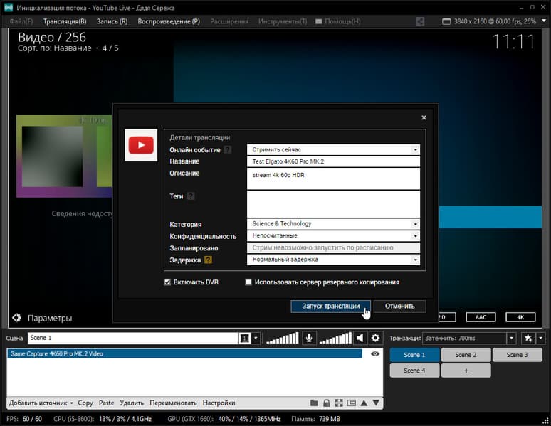 Итак, в бой! Точнее, запускаем трансляцию игрового процесса в формате 4K 60p.