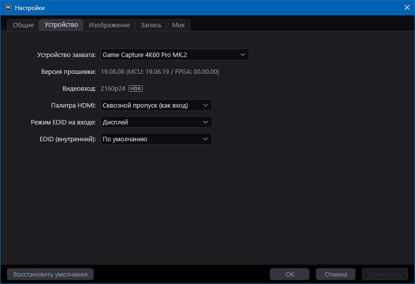 Осталось разобраться с настройкой важной функции, которая уже упоминалась. Речь о записи в диапазоне HDR, которая возможна с нашей картой захвата. High Dynamic Range Imaging — это довольно «свежая» технология, увеличивающая диапазон яркости видео и изображений. Телевизоры с поддержкой HDR появились не так давно, а доступного контента в таком формате с каждым днем становится все больше. Например, фильмы с размером кадра 4K теперь продаются на дисках формата 4K UHD HDR BD (именно в таком формате они успешно копируются с этих дисков и без труда скачиваются с известных источников. Но это нехорошо).