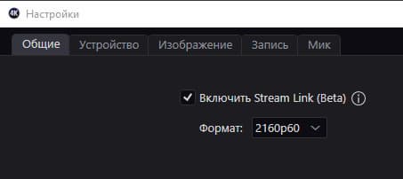 Направить в эту программу видеосигнал, поступающий на карту захвата, можно несколькими способами. Так, пользователь может задействовать движок Stream Link, который активируется в настройках 4K Capture Utility.