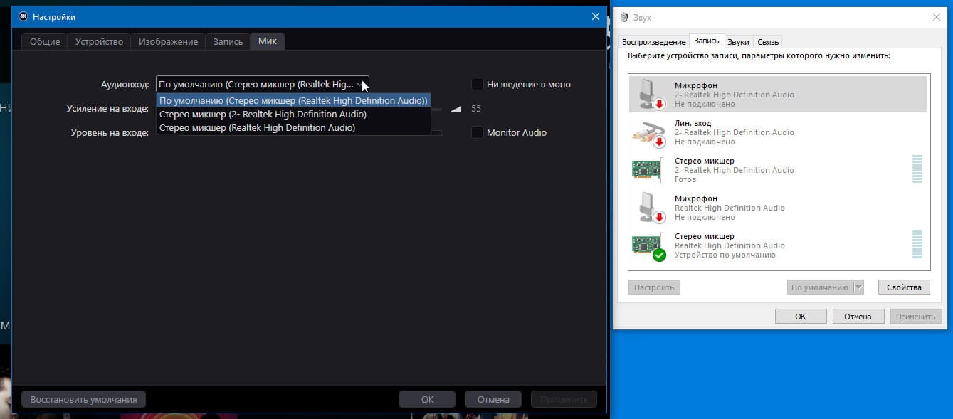 А что со звуком? Он поступает в карту захвата вместе с видеосигналом, если захватывается внешний источник. Вот с захватом сигнала видеокарты этого же компьютера ситуация выглядит не такой простой. Видимо, перед захватом придется перенаправить звук на видеовыходы графического ускорителя (Nvidia High Definition Audio). В дополнение к этому, программное обеспечение Elgato умеет получать звук из других источников, микшируя его с основным. Например, с микрофона или стереомикшера ПК.