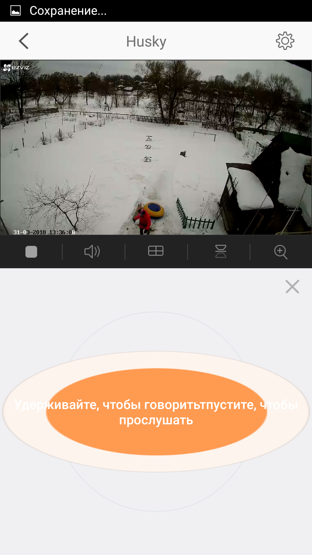 Помимо этой банальной задачи, динамик помогает осуществлять обратную связь с кем-либо, находящимся в поле зрения камеры. Попросту говоря — камера может использоваться как видеотелефон, но картинку, разумеется, будет видеть лишь соединившийся с камерой через мобильное приложение. Для того, чтобы отправить голосовое сообщение на динамик камеры, нужно нажать и удерживать соответствующую кнопку в мобильном приложении.