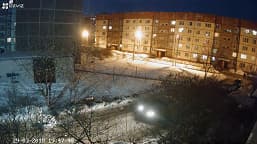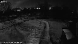 С наступлением вечера мы пристально наблюдали за картинкой, транслируемой с камеры. Но даже когда исчез последний намек на дневной свет и включились фонари, камера по прежнему работала в цветном дневном режиме. На третьем стоп-кадре,в правой части картинки, можно видеть работающую инфракрасную подсветку соседней IP-камеры, которая давно переключилась в ночной режим. И этот сосед — вовсе не подслеповатый дешевый аппарат, а вполне современная камера, предназначенная для использования в составе профессиональных комплексов видеонаблюдения.