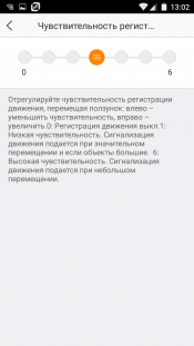 Получается, что единственная функция камеры, имеющая индивидуальные изменяемые настройки — это чувствительность детектора движения, регулируемая в условных единицах в диапазоне от 0 до 6. Практика показала, что в большинстве стандартных случаев будет достаточно центрального положения ползунка, чтобы реагировать на появление в кадре объектов среднего размера (человек, идущий на расстоянии 5-10 метров от камеры). Увеличение чувствительности вплоть до максимальной может привести к ложным срабатываниям тревоги вследствие изменения освещенности, из-за капель дождя и т. д.