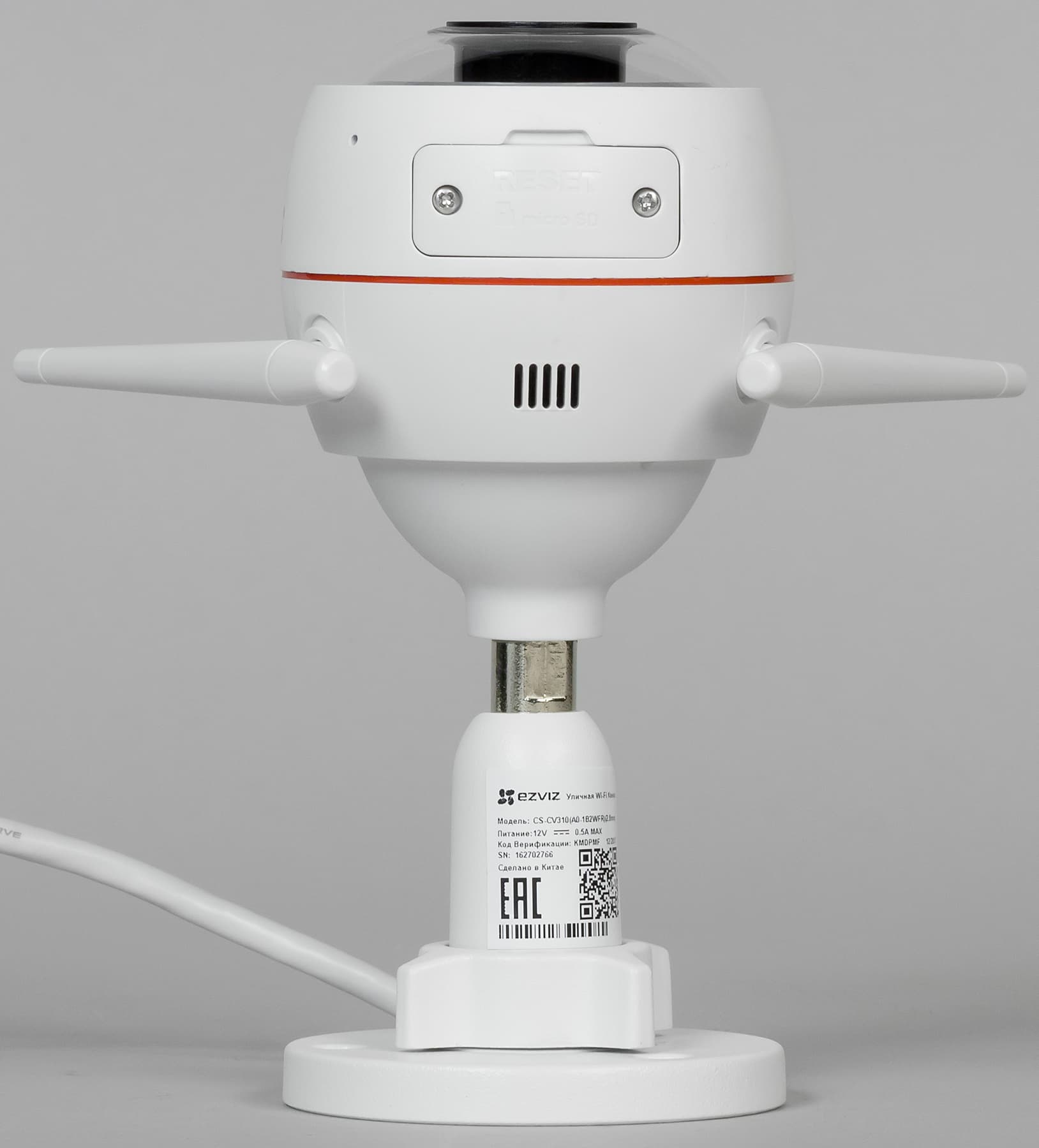 Две поворотные Wi-Fi-антенны позволяют держать устойчивую связь с маршрутизатором или Wi-Fi-рекордером на большом удалении. Это важная деталь, которая значительно увеличивает надежность беспрерывного взаимодействия при развертывании системы наблюдения на больших площадях или при наличии физических преград между камерой и приемным устройством.