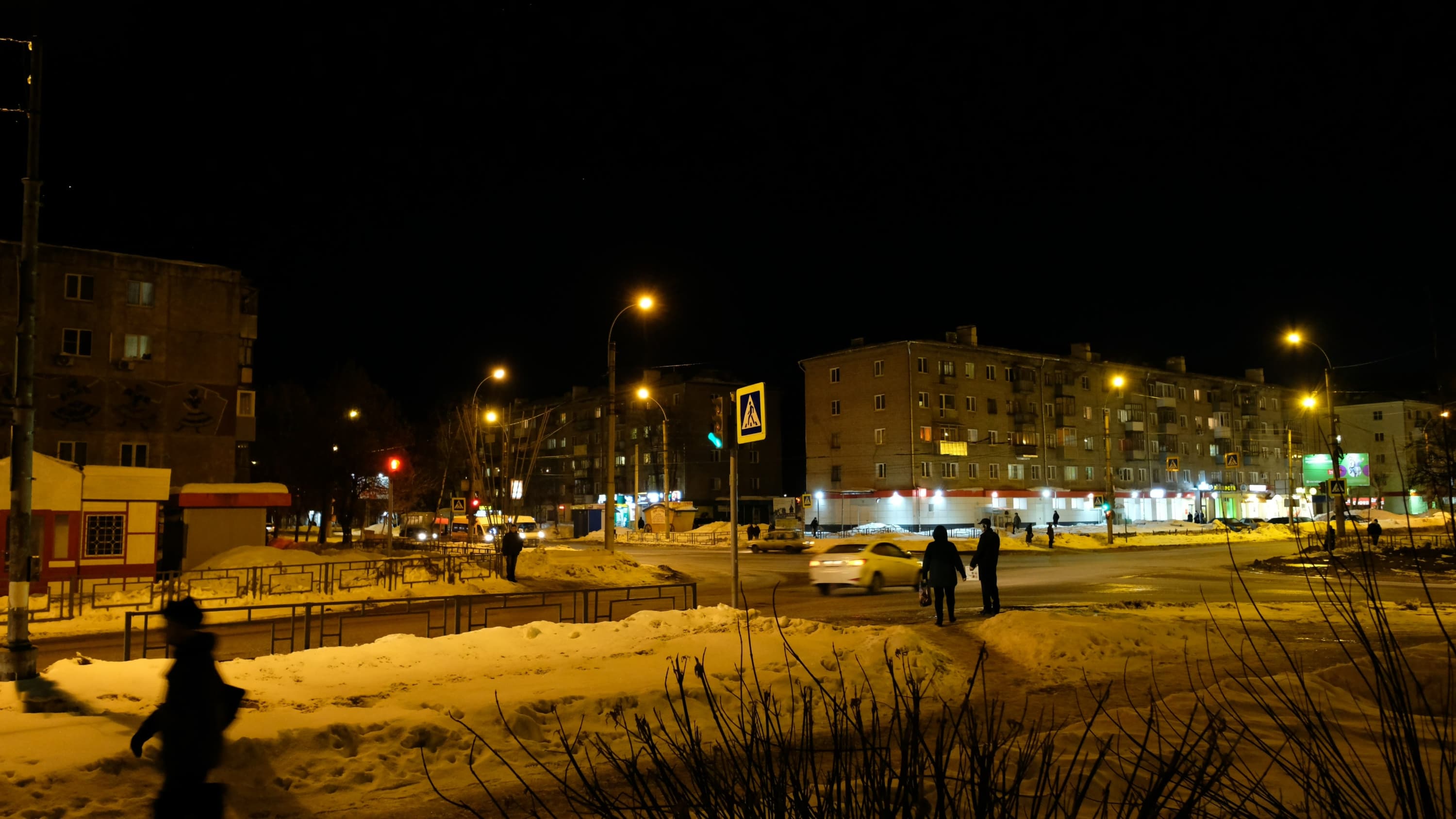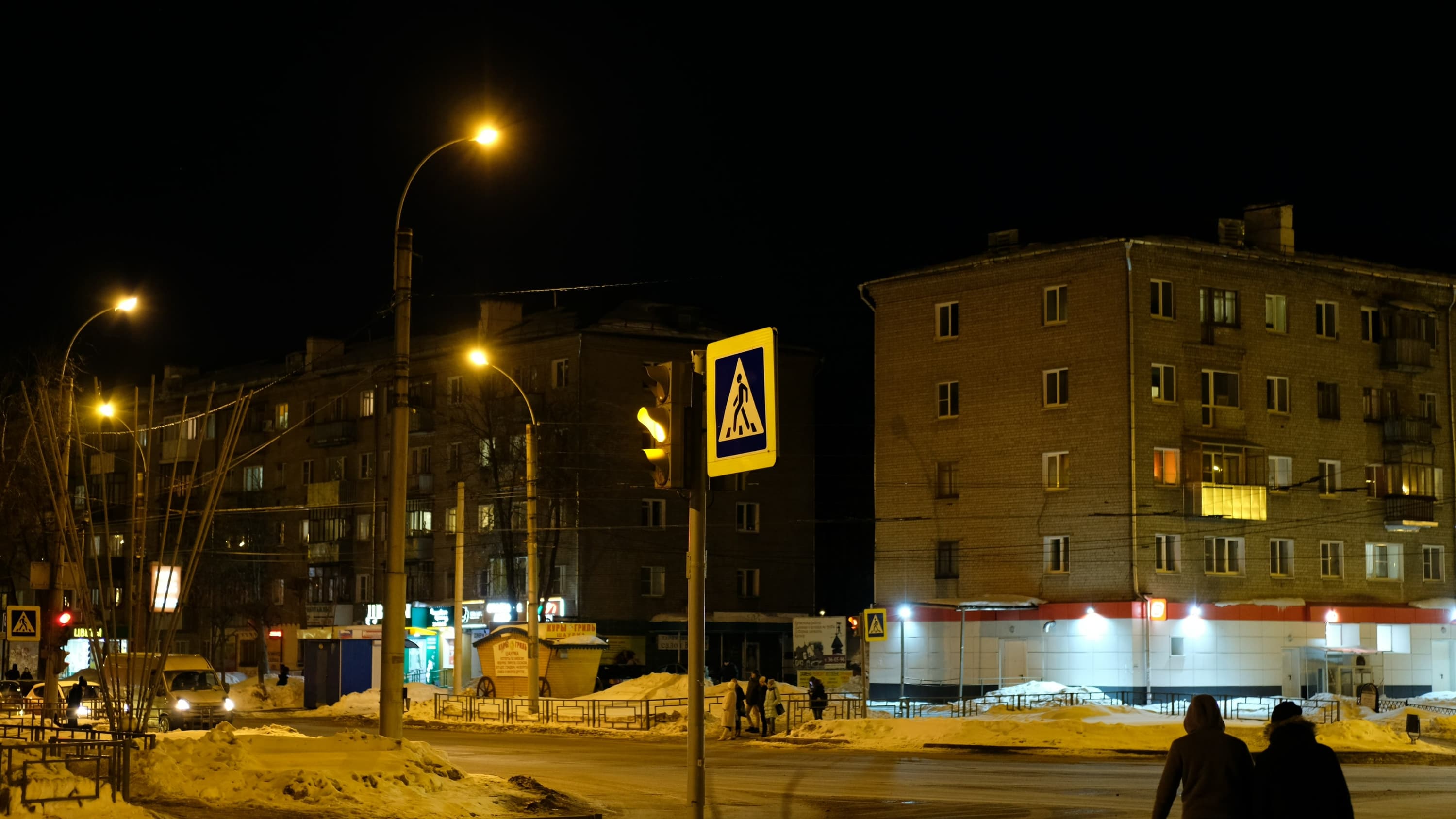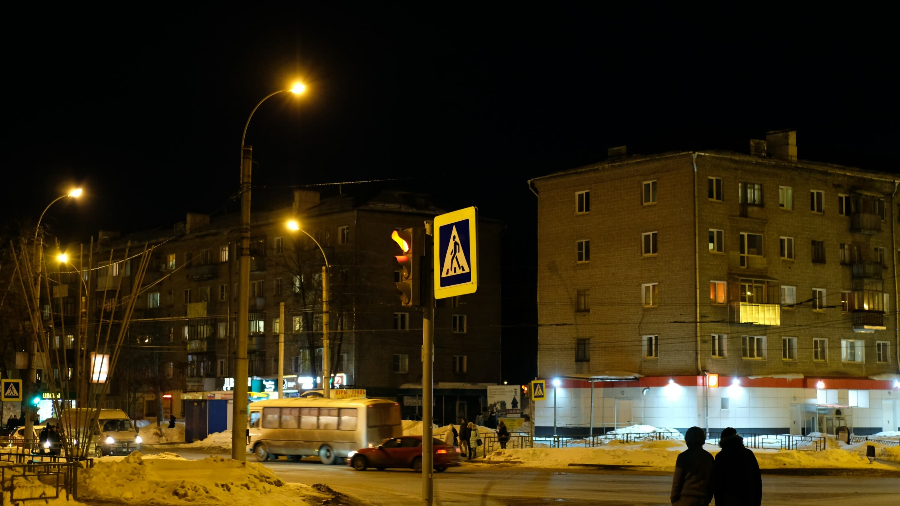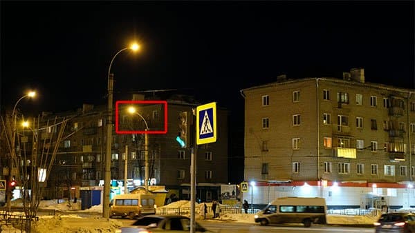 Для того, чтобы выяснить, при каком уровне усиления в кадре появляется цифровой шум, мы произвели стандартную съемку вечерней улицы: диафрагма полностью открыта, а выдержка была переведена в автоматический режим, ее начальное значение составило 1/25 с обоими объективами. Вместе с увеличением чувствительности выдержка автоматически укорачивалась до 1/125 с 14-миллиметровым объективом и до 1/200 с 35-миллиметровым. Таким образом автоматика старалась не допустить пересвечивания кадра.