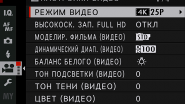 | 3840×2160 30p | 1920×1080 60p | Скоростная съемка 1920×1080 ×5 |