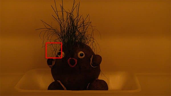 Ранее мы изучали поведение камеры при низком уровне освещенности, в результате чего выяснили, что 35-миллиметровый объектив «светлее» 14-миллиметрового. Также стал известен уровень ISO, на котором в кадре возникает назойливый шум — это ISO 6400. Текущая съемка производилась при полностью автоматических настройках экспозиции, лишь два параметра были выставлены вручную — это диафрагма, открытая до максимума, и баланс белого, переведенный в предустановку «Лампа накаливания». При этом использовался широкоугольный объектив с меньшей светопропускной способностью, поскольку угол обзора 35-миллиметрового «фикса» оказался слишком узким для того, чтобы тестовая сцена уместилась в кадре.