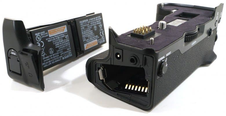 Выдвигаемый лоток содержит два аккумулятора — точно таких же, какие используются в самой фотокамере. Таким образом, время автономной работы при наличии подобной рукояти увеличивается втрое, поскольку камера будет последовательно забирать энергию от каждой батареи.