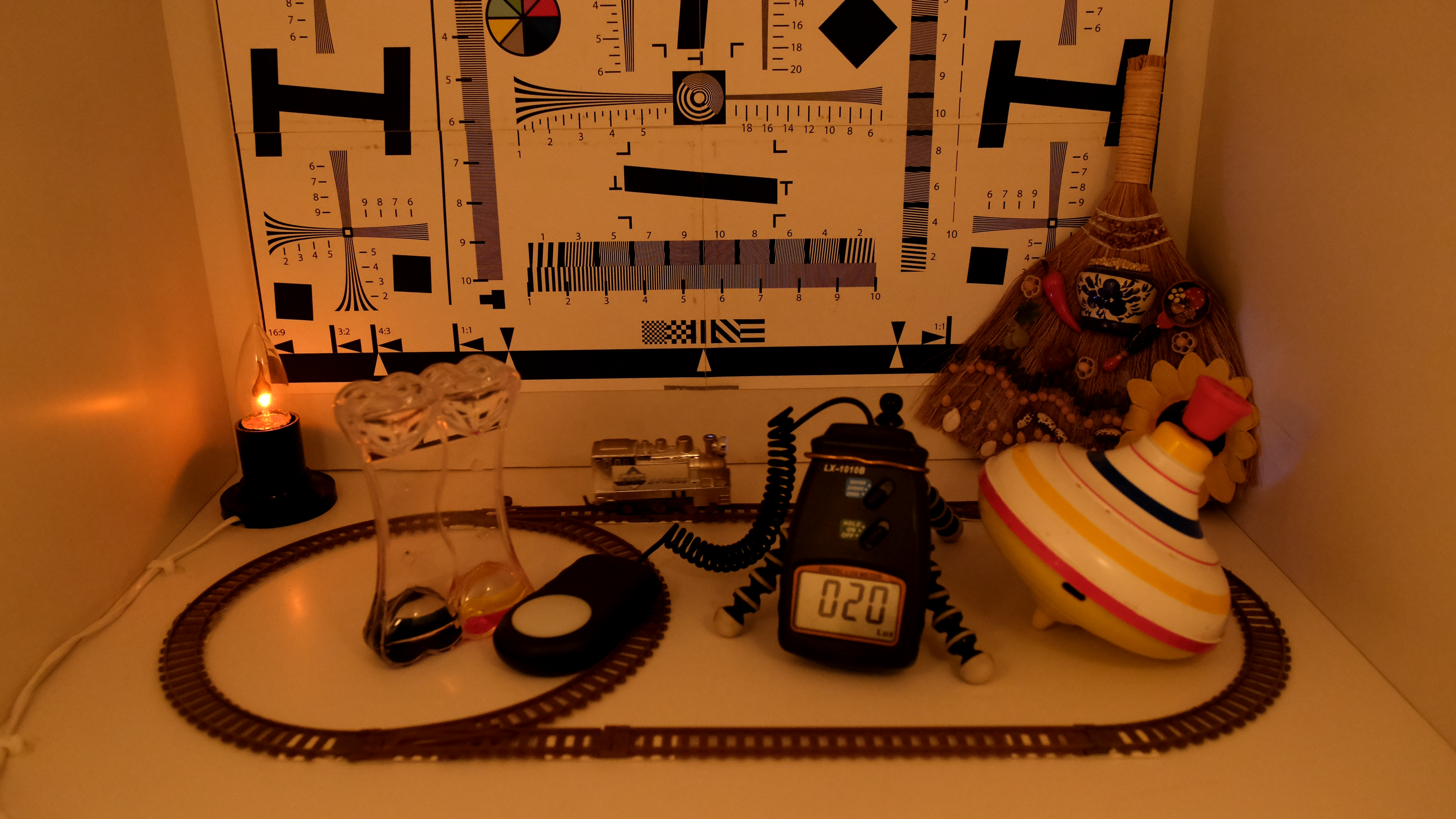 Вряд ли была необходимость проводить еще и это тестирование: в великолепной чувствительности камеры мы убедились ранее. Дополнительно отметим, что даже в условиях почти полного отсутствия света автоматика камеры не стала поднимать ISO выше 3200. Что позволило получить естественную, как в жизни, картинку даже при освещенности менее 1 люкса.