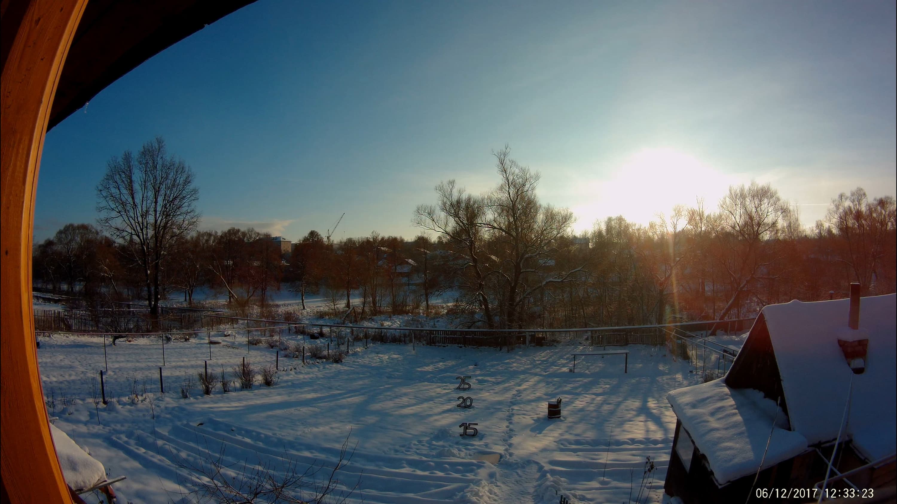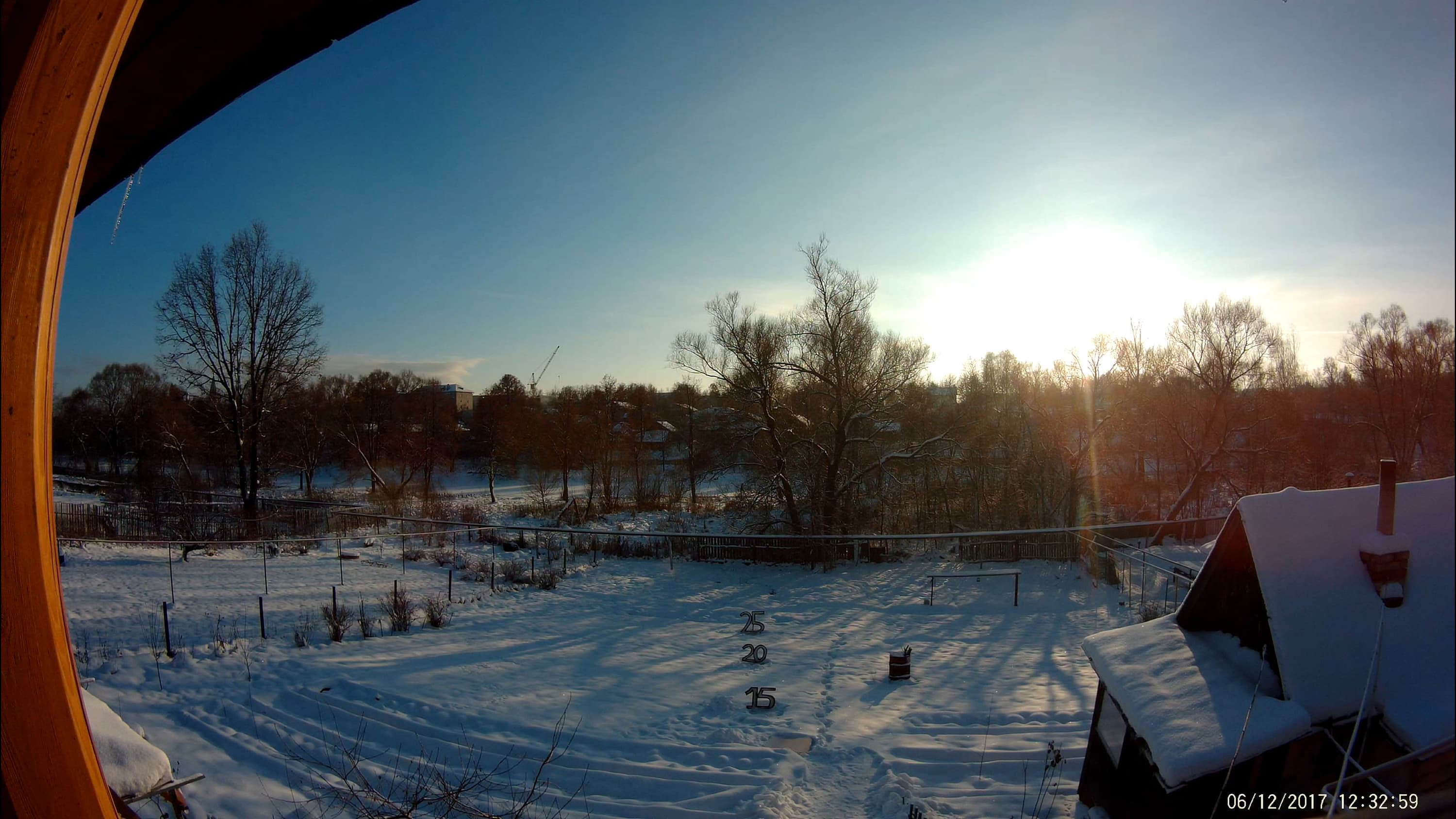 Прежде всего нужно попросить прощения за столь темную сцену. Это не раннее утро и даже не сумерки, несмотря на ошибочную дату, прописанную в служебных полях файла. Это самый что ни на есть разгар дня, около полудня. К сожалению, погода в нашей местности с октября по апрель выглядит преимущественно вот так. Солнышко если и проглядывает, то в очень редкие дни и на пару часов, поймать его бывает довольно сложно (единственный раз за две недели это все же удалось сделать). Во время этой съемки мы даже измерили освещенность, она оказалась ниже 1000 люкс. Такой уровень освещенности бывает, например, в тени здания солнечным днем. Зима, ничего не поделаешь. Но изучим полученные кадры.