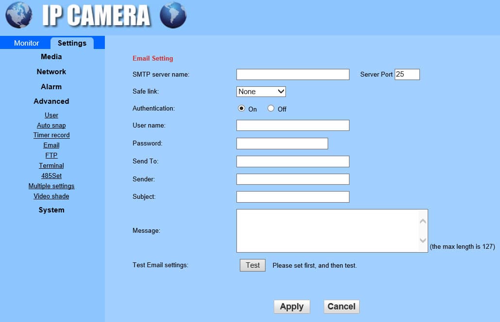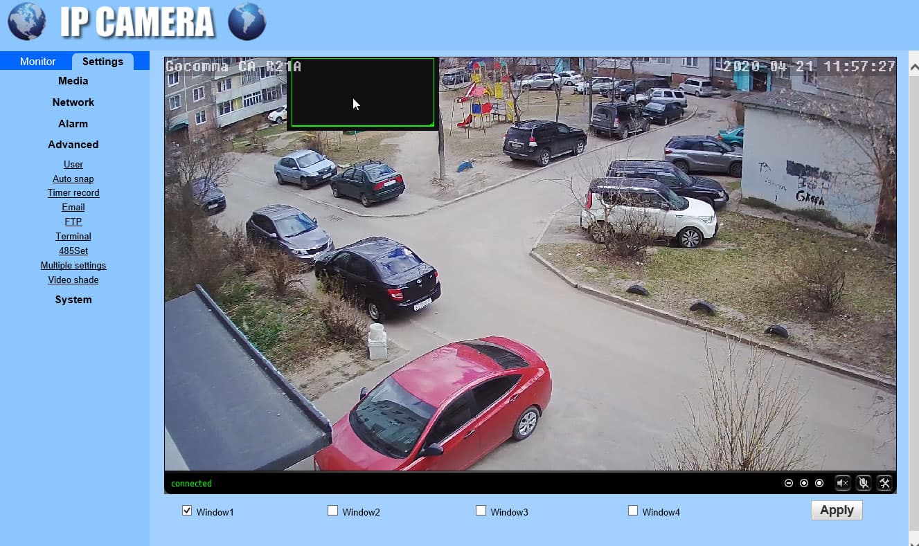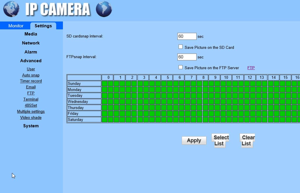 Прочие настройки являются вспомогательными, они требуются для того, чтобы камера могла самостоятельно оповещать о событиях, реагировать на них. В нашем случае единственным таким событием является детектор движения, иных датчиков камера не имеет. В зависимости от настроек, при обнаружении движения камера отсылает стоп-кадр по электронной почте или заливает его на FTP, либо сохраняет видеоролик события на карту памяти. Либо производит все эти действия одномоментно.
