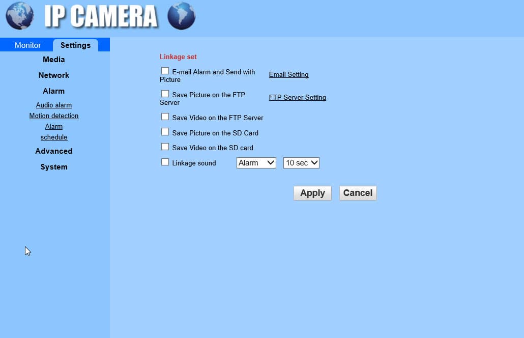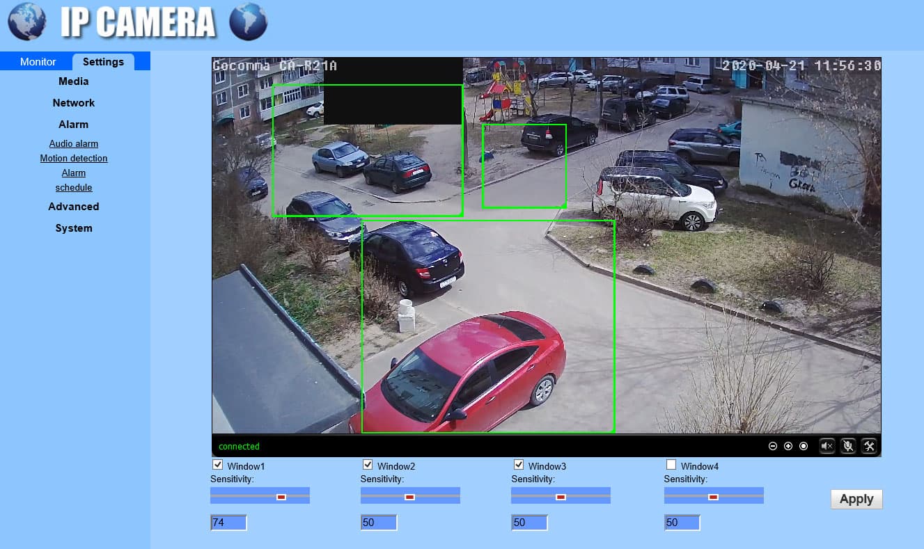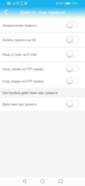 Однако и здесь, в скромном приложении, можно отыскать почти все самое необходимое, так сказать, минимальный стартовый пакет для настройки аппарата: выбор качества видео, настройка зон и чувствительности детектора движения, активация тех или иных действий при тревоге, ввод E-mail и FTP-настроек.