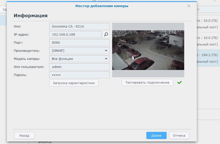 Поддержка камерой открытых стандартов ONVIF и большинства используемых сегодня протоколов дает возможность использовать аппарат в составе любых систем видеонаблюдения, которые работают с такими источниками. Например, камера без труда подключается к домашнему серверу Synology, на котором «крутится» фирменный софт Surveillance Station. Главное — указать правильный номер порта, по которому камера отдает свой поток.