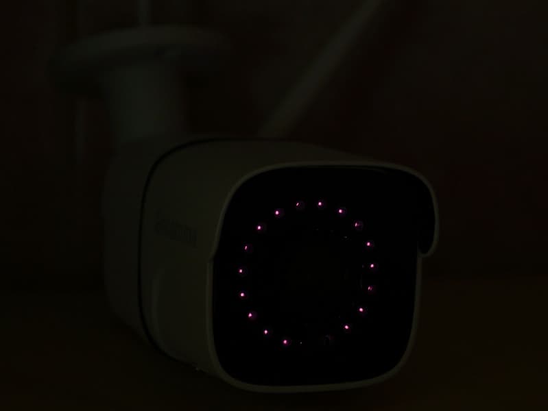 Эта инфракрасная подсветка состоит из 18 диодов, размещенных вокруг объектива. Их работа хорошо видна в темное время суток.