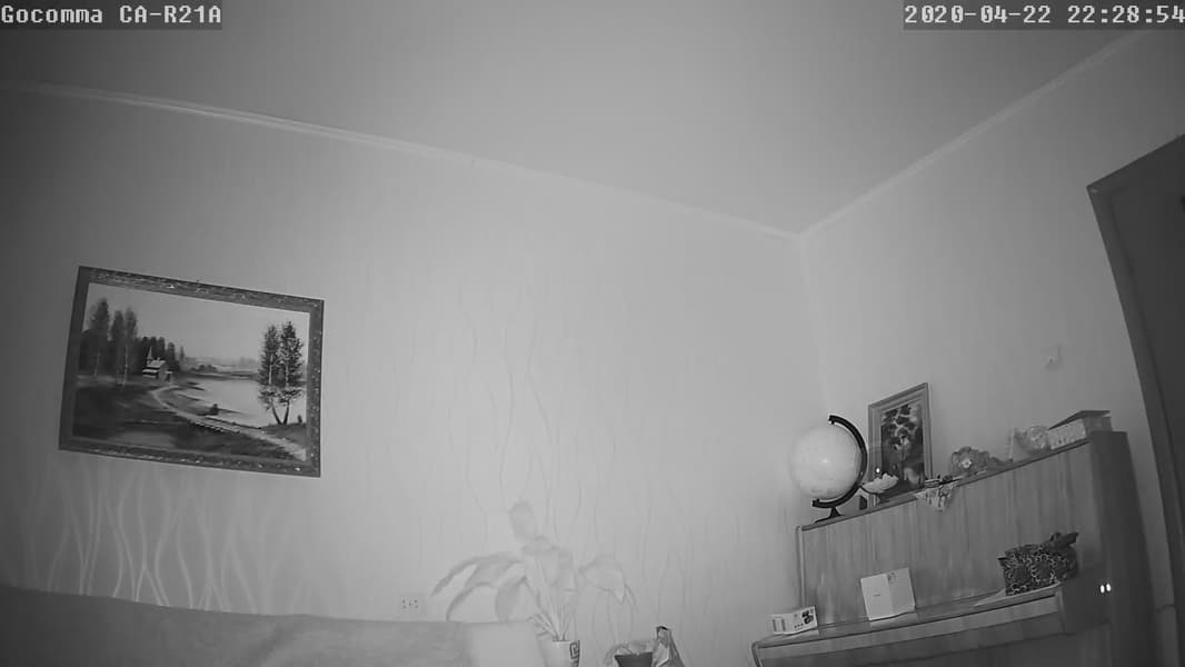 Производителем заявлена 30-метровая эффективная дальность подсветки. На самом деле, конечно, реальная эффективность вряд ли дотягивает до 25 метров, но, учитывая столь высокую чувствительность сенсора, здесь хватило бы и меньшей мощности. Вот так камера видит обычную комнату в полной темноте, если не считать слабую подсветку светодиодной клавиатуры.
