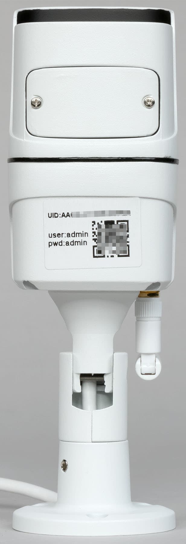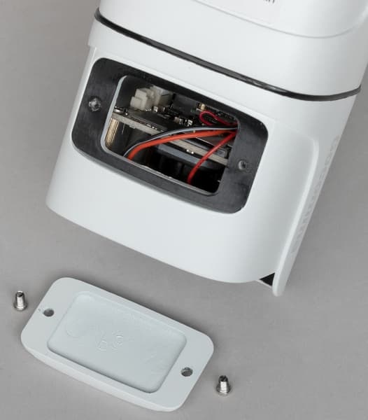 Съемная Wi-Fi-антенна поворачивается и наклоняется в любом направлении, так, что мешать она не будет, в каком бы положении ни была примонтирована камера. В передней нижней части корпуса имеется небольшой герметичный лючок, привинчиваемый болтами.