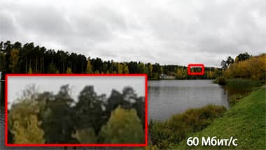 Но при съемке динамичных сцен уже наблюдается нехватка битрейта. Это и неудивительно, с такими-то размерами кадров. Следующая традиционная съемка бурлящей воды проводилась при стандартном уровне битрейта, но с разной частотой кадров.