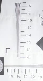 Детализация изображения в таких кроп-режимах, само собой, падает. И мы сейчас это докажем, взяв старший режим съемки 5.3K с размером 5312×2988 пикселей и частотой 60 кадров в секунду. Видно, что детализация падает с 2000 ТВ-линий по горизонтальной стороне кадра при съемке с «широким углом» до 1400 ТВ-линий с «узким углом».