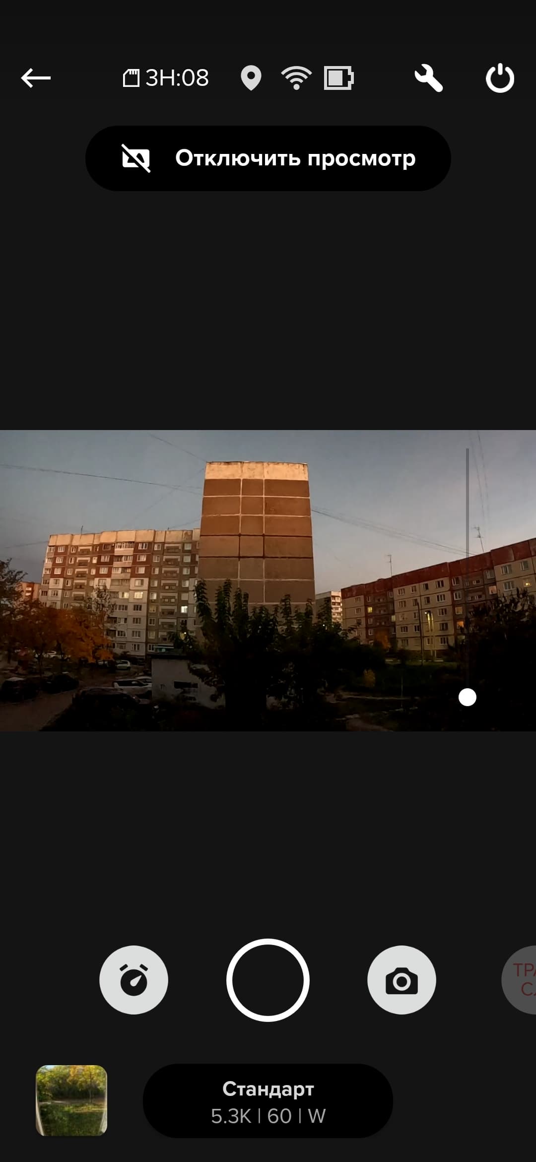 Помимо обычного таймлапса с выбором интервалов камера предлагает съемку в режиме TimeWarp. Он отличается от таймлапса тем, что в такой съемке включается стабилизатор, а скорость записи можно в любой момент изменить, нажав соответствующую кнопку на дисплее камеры, в мобильном приложении или механическую боковую кнопку. Также остался доступным режим предзаписи, когда камера постоянно фиксирует происходящее и в итоговую запись попадет все, что «видел» объектив за 15 или 30 секунд до нажатия кнопки спуска. На месте и прочие режимы: запись по расписанию, запись установленной длительности и другие.