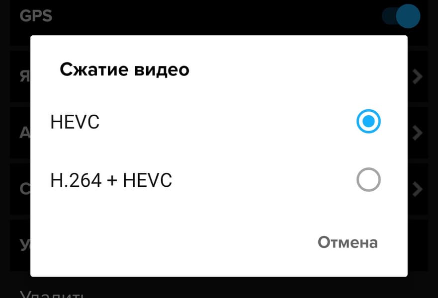 В настройках камеры пункт выбора кодека остался хитрым и малопонятным для того, кто «не в теме».