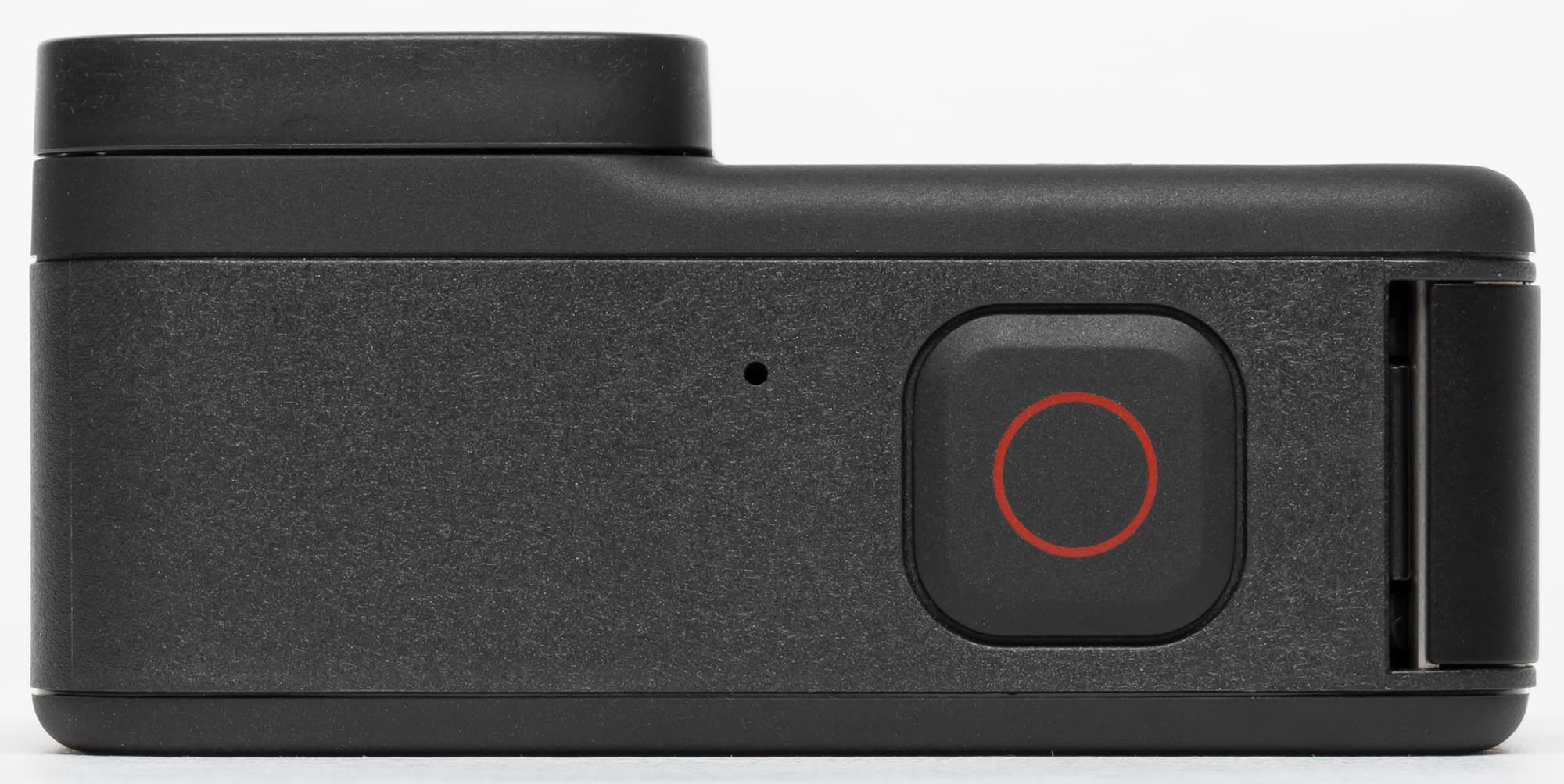 Верхняя кнопка служит для старта и остановки записи либо создания фотоснимка, это зависит от текущего режима работы камеры. Этой же кнопкой включается мгновенная запись без предварительного включения аппарата (функция QuickCaprure). Крепежная система здесь та же, что и в рассмотренной GoPro Max — два ушка, которые убираются в предусмотренное для этого углубление.