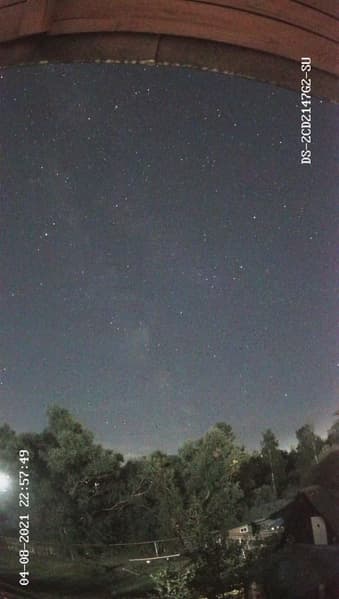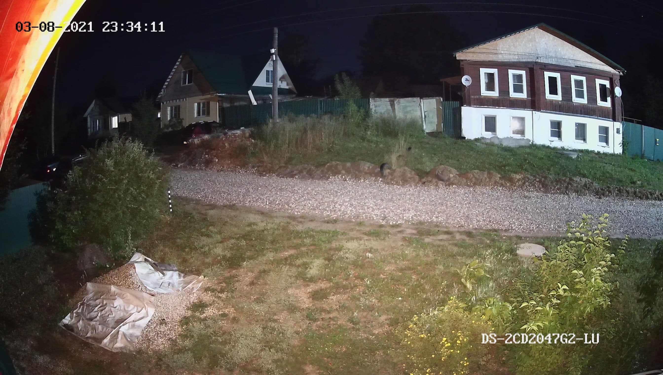 Но достаточно теории. Далее будут приведены сравнительные стоп-кадры, полученные камерами в разное время суток в разных режимах работы, дневном и ночном. Отметим: эти режимы в каждой камере реализованы тоже по-разному. Так, в камере DS-2CD2047G2-LU ночной режим подразумевает подсветку белыми светодиодами (но это необязательно, ее можно отключить). У купольной камеры DS-2CD2147G2-SU нет вообще никакой подсветки, поэтому в режиме Ночь она попросту меняет параметры экспозиции, картинка становится мягче, неконтрастней. И, наконец, камера DS-2CD2643G0-IZS, имея традиционную инфракрасную подсветку, в режиме Ночь использует ее, как единственный способ разглядеть в темноте хоть что-то. Кстати, пусть читателя не смущает раннее время, отпечатанное в кадрах. В это время здесь, чуть севернее Москвы, небо уже абсолютно темное, без намека на закат.