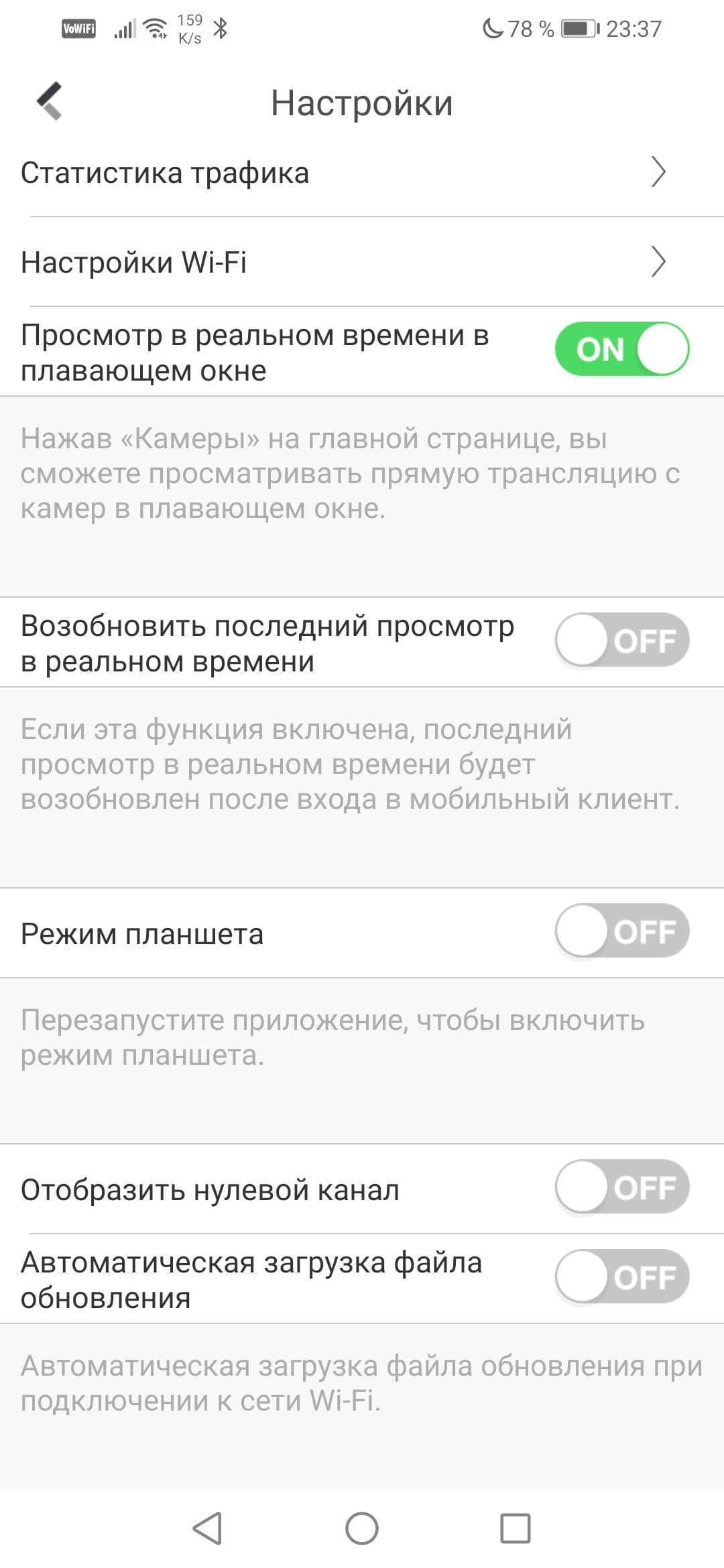 Наверное, излишне говорить о безупречно надежной и быстрой работе приложения в любых режимах. Широкая функциональность никак не сказалась на производительности мобильной программы, за что разработчики Hikvision удостаиваются отдельной похвалы.
