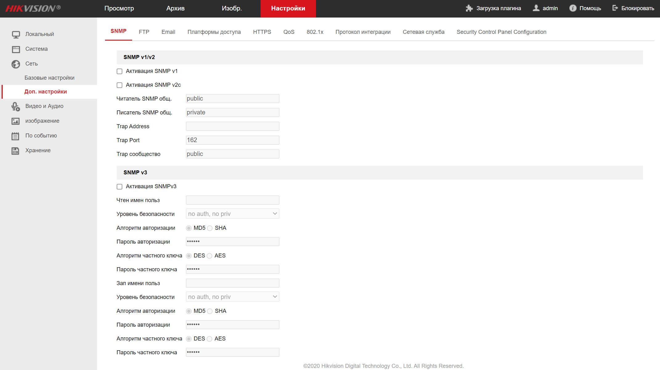 | Поддержка протоколов | TCP/IP, DHCP, Hik Cloud P2P, DNS, DDNS, NTP, SADP, SMTP, NFS, iSCSI, UPnP, HTTPS |