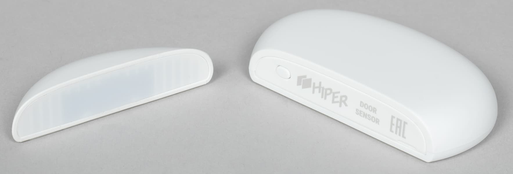 Проще этого прибора и придумать нельзя. Впрочем, не так. Ведь здесь, кроме банального геркона (герметичный контакт), имеется еще и передатчик, отправляющий сигнал тревоги на свой хаб. Устройство состоит из двух деталей: основной прибор с контактом и управляющей электроникой плюс накладка с магнитом.