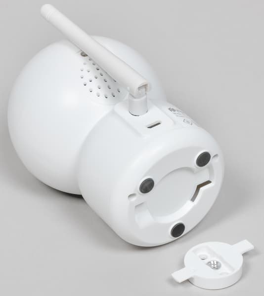 Камера получает питание через обычный разъем Micro-USB, а наклон и поворот Wi-Fi-антенны ограничены так, чтобы она не задевала кабель.